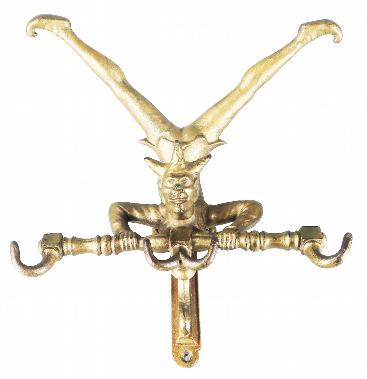 Cast Iron Unusual Hat and Coat Wall Mount Rack. Rare Jester image. Excellent condition. 12 X 7 X 10 1/2 inches.