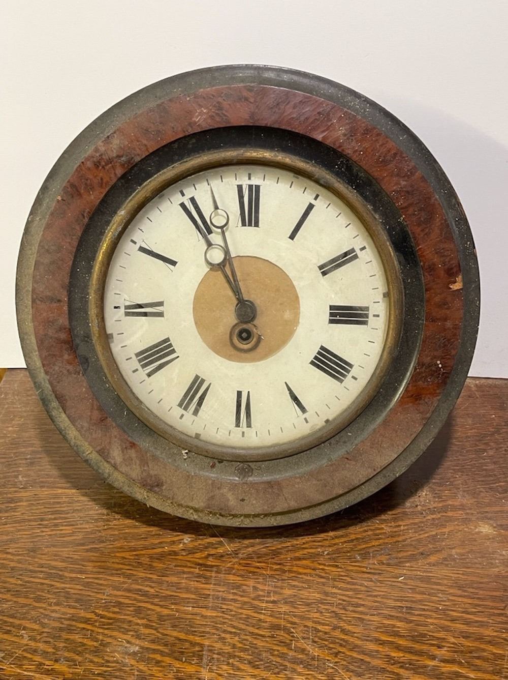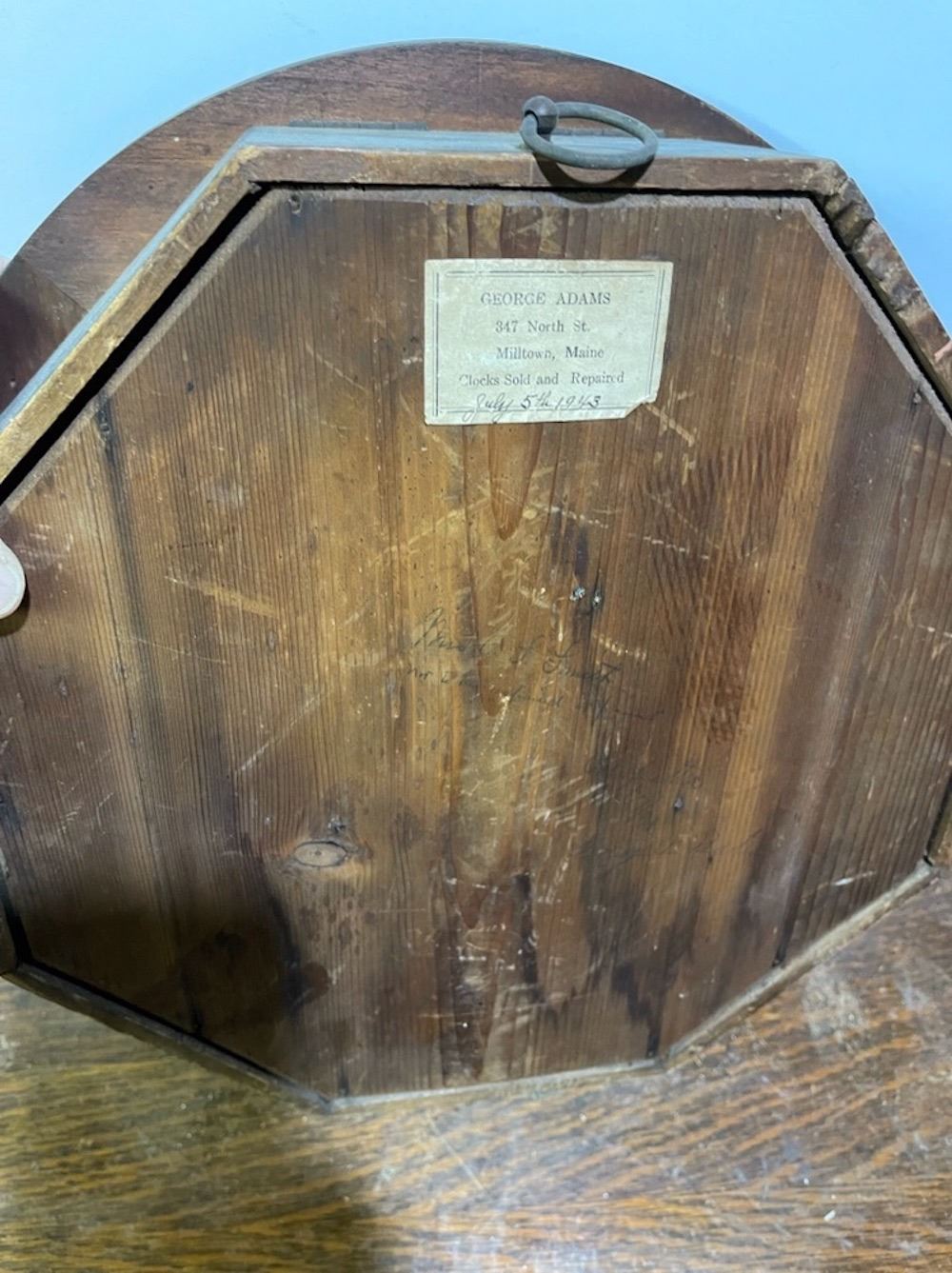 Unusual gallery clock, paper label on back, George Adams, Milltown Main, measures approx. 15 inches wide, from the lifetime collection