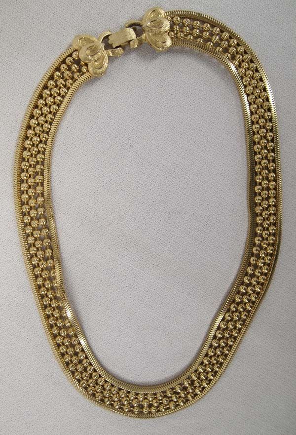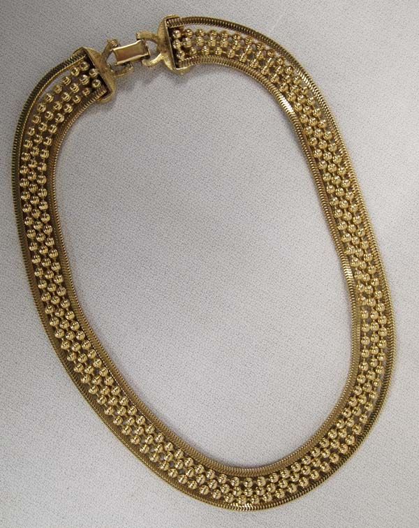 Unusual Goldtone 5 Strand Snake Chain Melon Ball Necklace, measures 15''