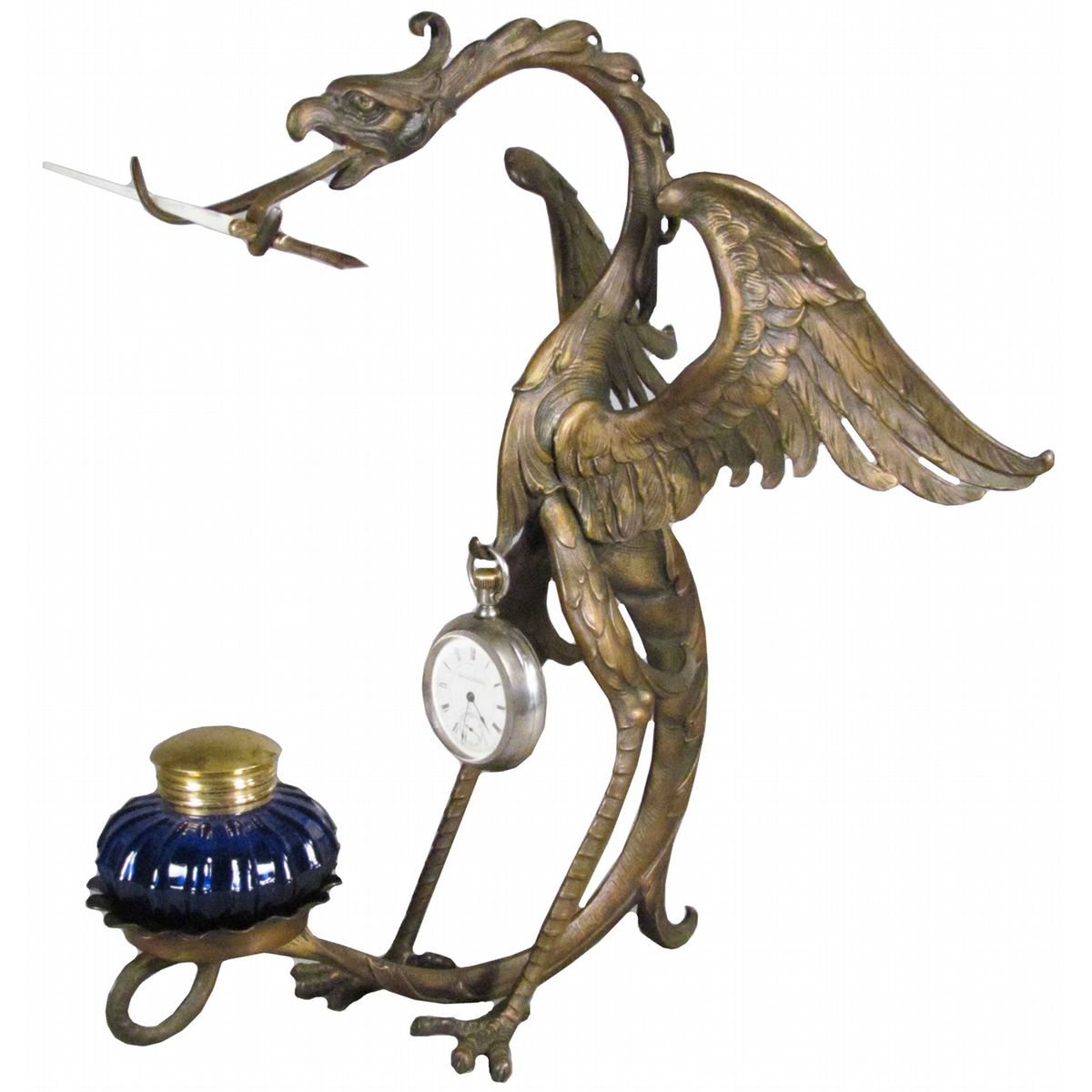 Unusual Gothic Eagle Inkwell, Watch & Pen Holder. Watch and Pen not included. Excellent original condition. 8 X 14 X 13 inches.