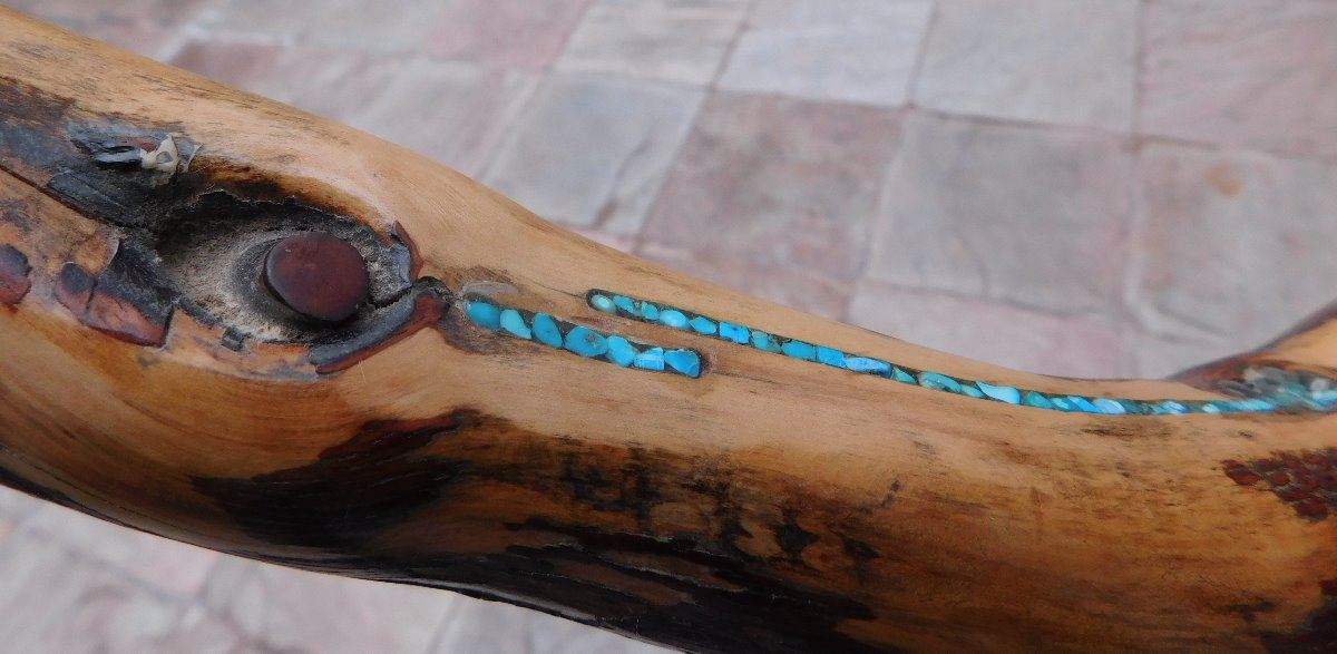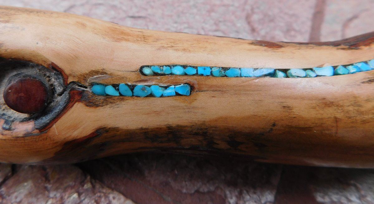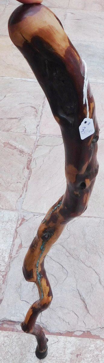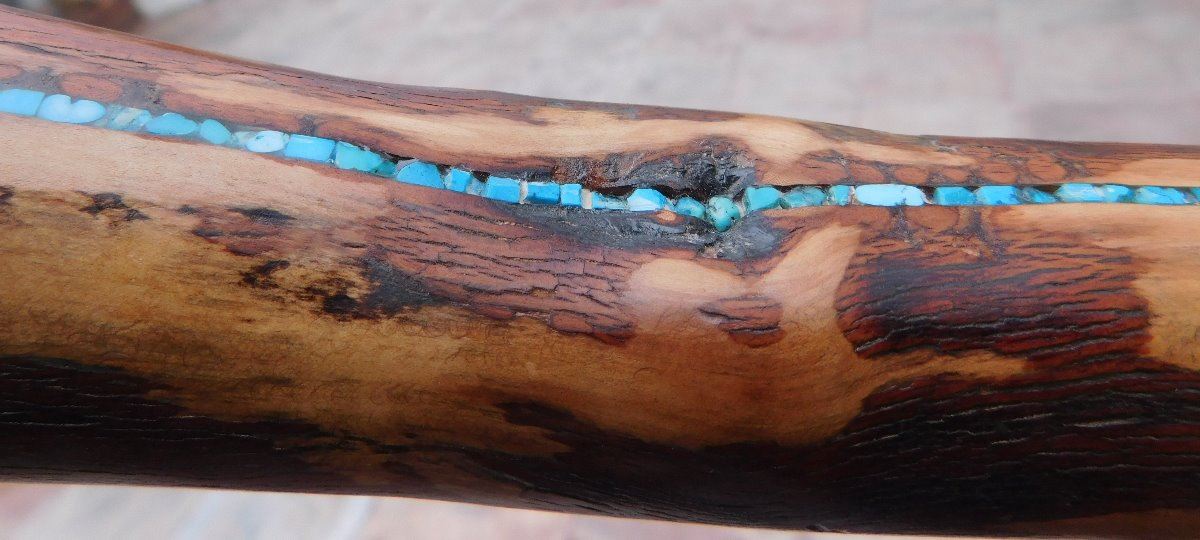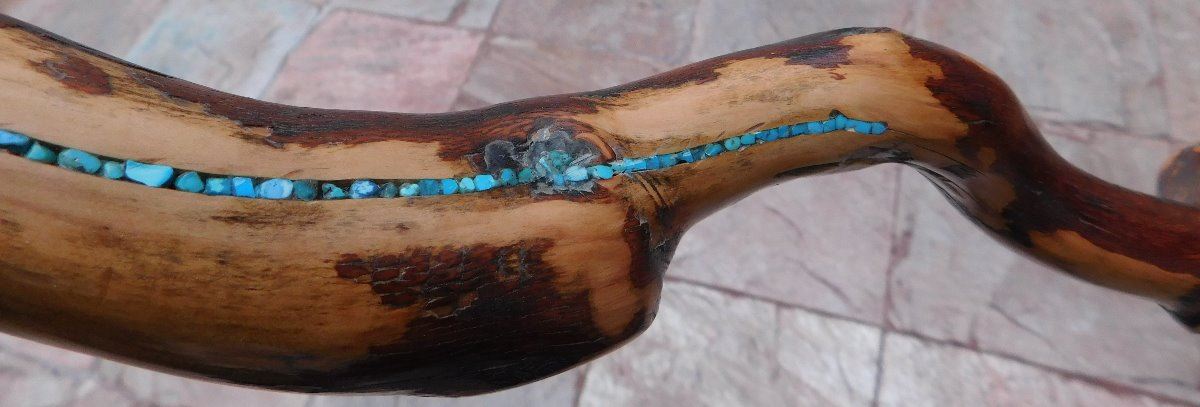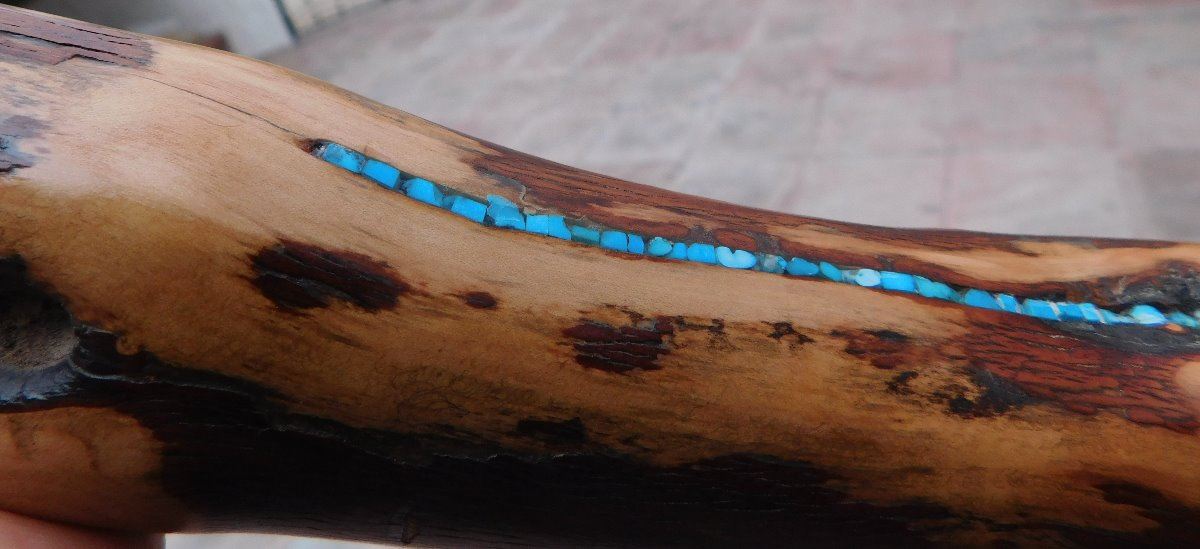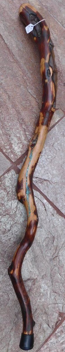 Unusual Inlaid Cane, modern item. Made of California hardwood and turquoise inlay, the item is 36" x 2" x 2". Handmade by Phil Wheeler, California, USA. Good turquoise inlay, nice stonework. Condition: Good, see images. Shipping: $40.00 USA estimate only, due to length, w/insurance and signature.
