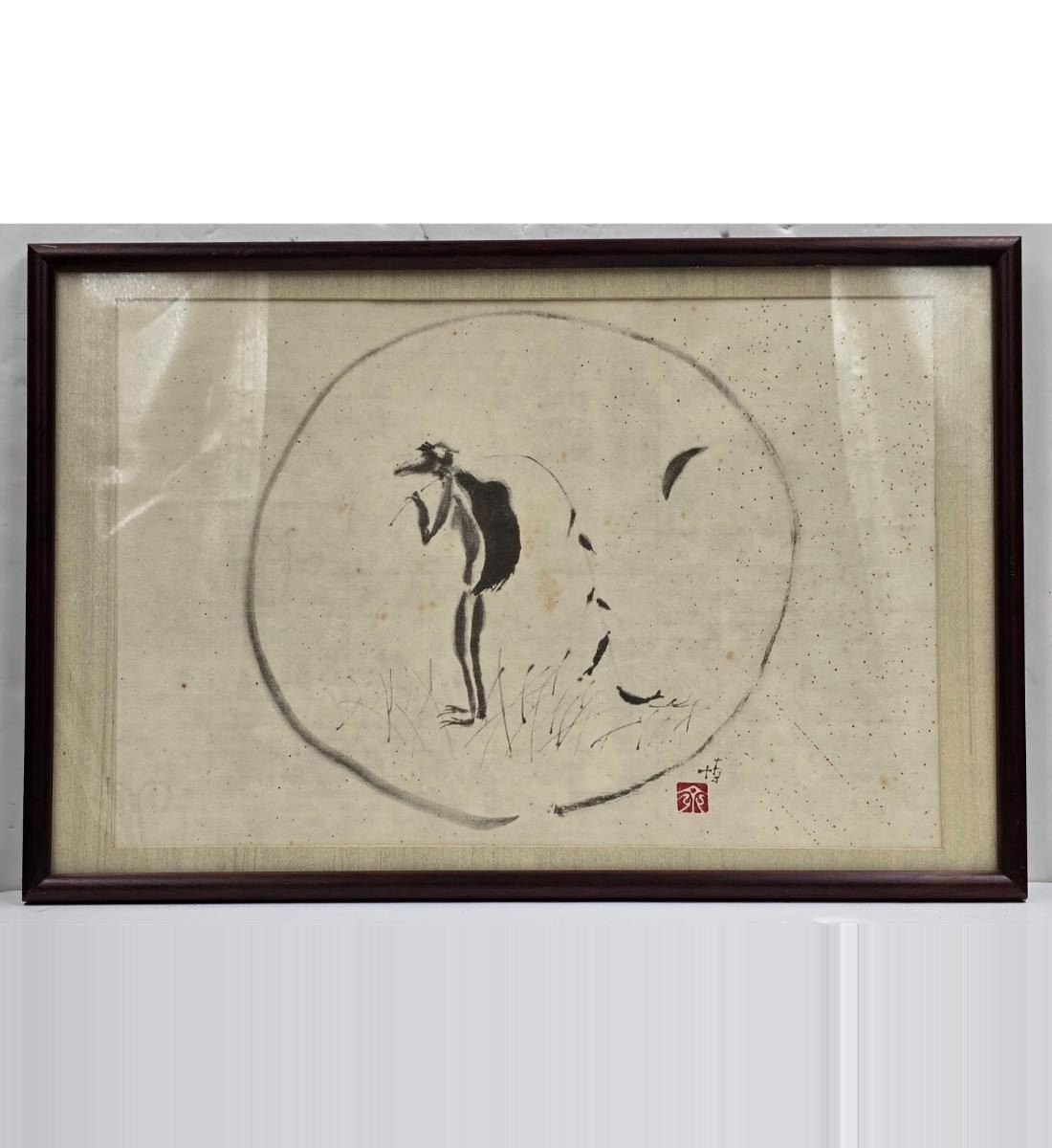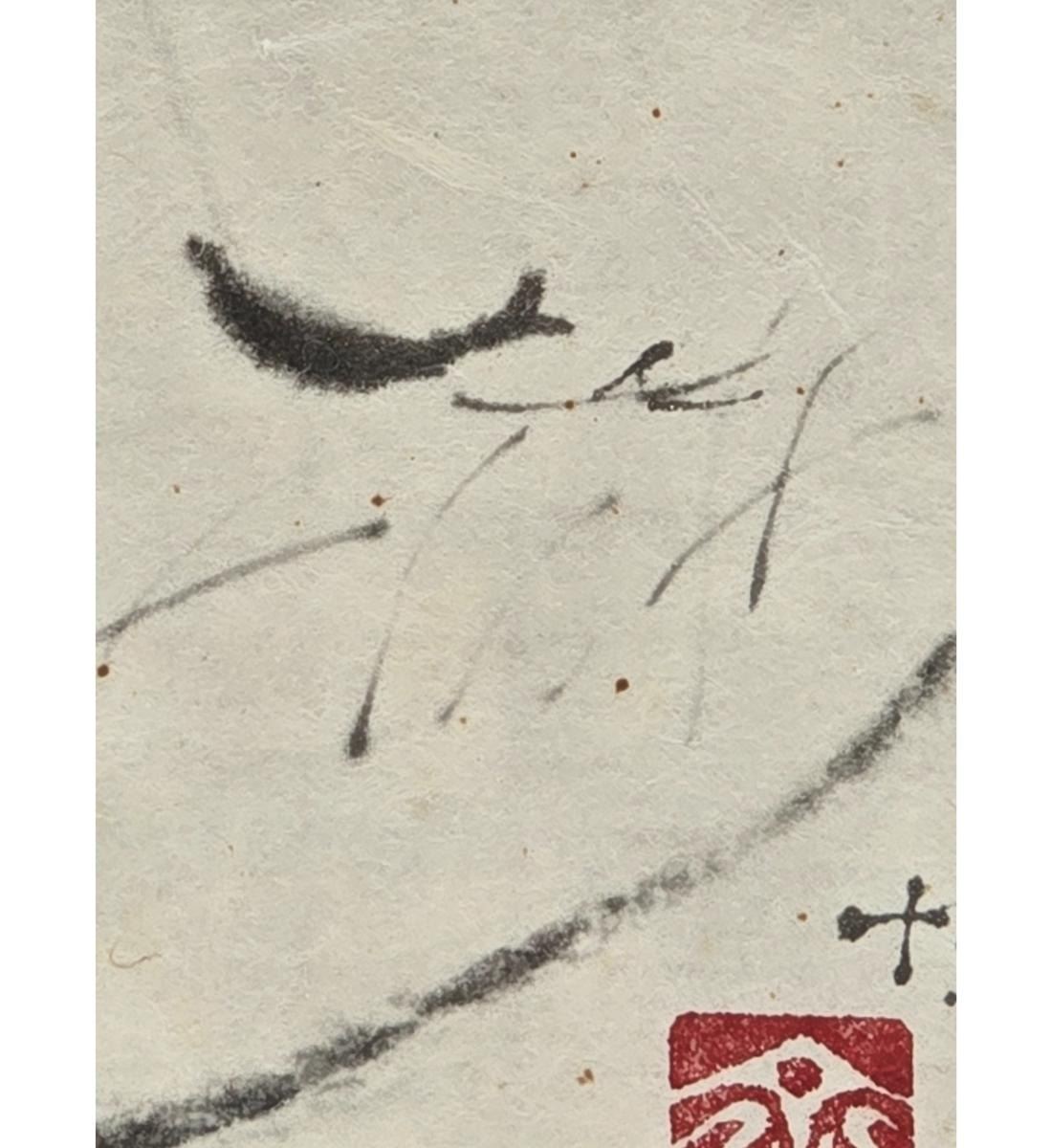 Unusual Japanese Ink On Paper Painting Signed. Frame Measure 12" X 18 1/4". Provenance: One Person Private Estate Central Florida.