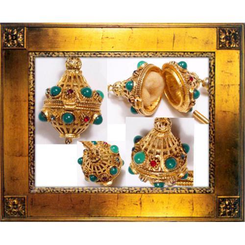 <tr><td>Title:Unusual Jeweled Vinaigrette POMANDER FOB</td></tr>