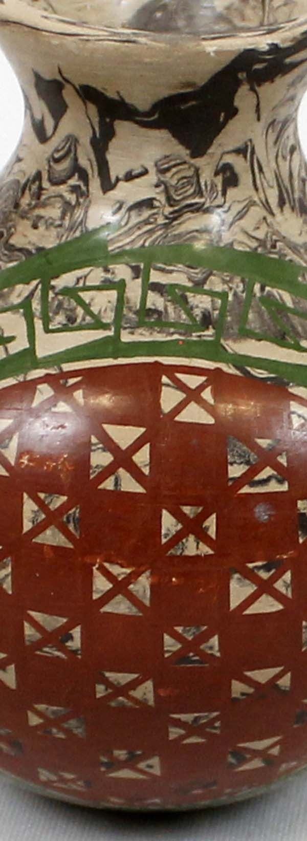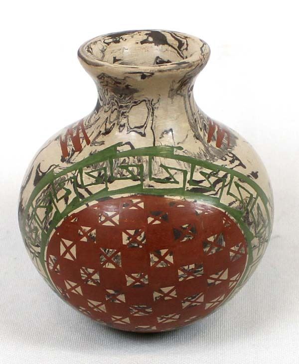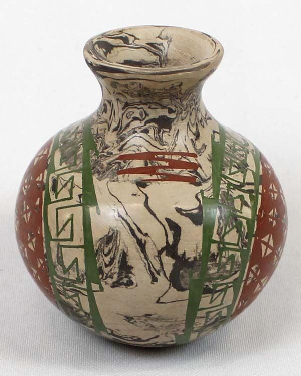 Unusual Marbleized Mata Ortiz Pottery Jar. This sweet thing measures 3 1/2'' x 4''