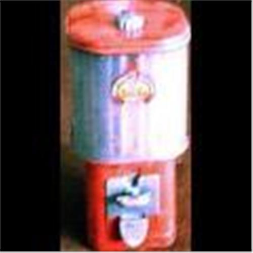 This is a product selectible, coin operated,penny "flat-pack" mechanial vending machine from yesteryear. It is very well made and in perfect operating condition. I have a key to unlock and fill it. The knob on top selects the row to be dispensed so you can select which variety (probably penny "Chiclets" packages)you buy. There is an "acorn" embossed into the release flap.