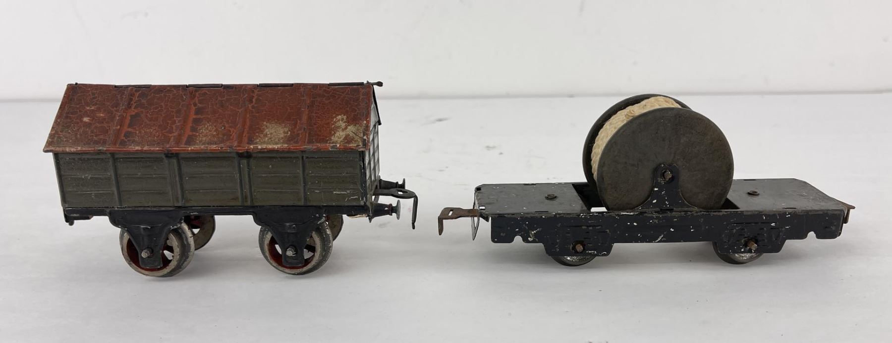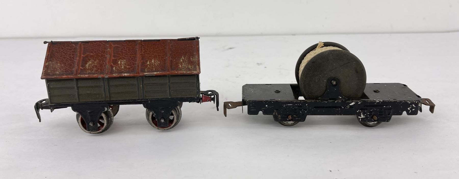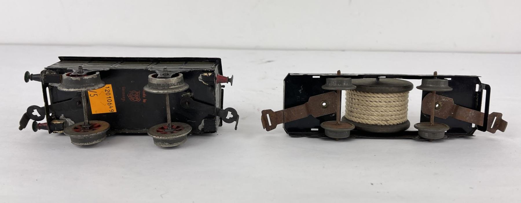 One is a marklin cement wagon, the other is unmarked and appears to be a rope car.
