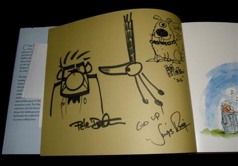 Up (2009) Autographed Book - This book for the art of UP has been signed on the inside cover by Pete Docter, who sketched Carl and Kevin, Bob Peterson who drew “Dug” and Jonah Rivera who was the producer of UP. Very rare to get a sketch from the Pixar artists. Purchased in a charity auction!