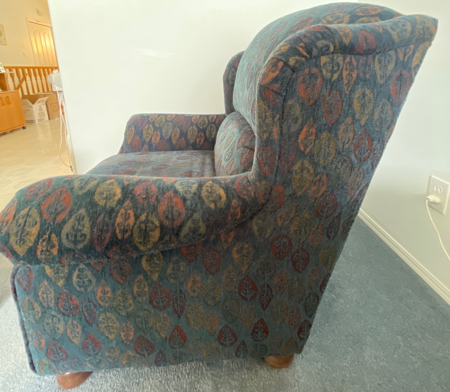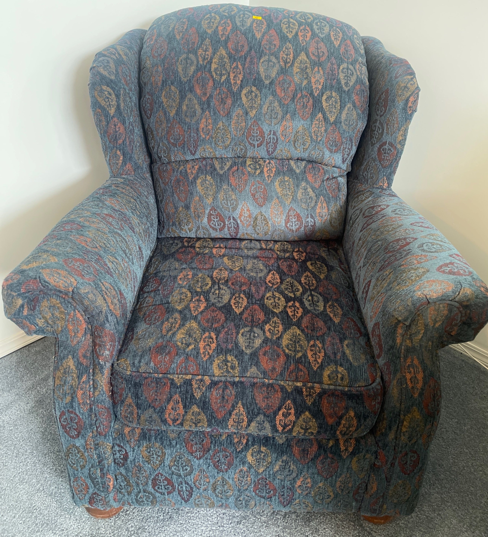 Upholstered Accent Chair - Navy w/ Printed Pattern 33x34x44 Like New