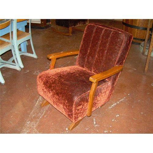 Up for sale is a Child's Upholstered Platform Rocker. Its age is unknown, but if you made me guess, I would say the 1940s or the 1950s. The unholstery I believe is velveteen and is free from any rips or tears. The rocker is slightly dirty, but I'm sure it could be cleaned up nicely. It measures 23" tall and would be a great size for a young girl to play with her dolls and rock them to sleep. If you have any other questions, please email us. Thanks for looking!!