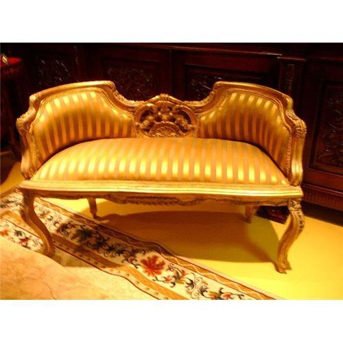 <tr><td>Title:Upholstered French Style Giltwood Bench</td></tr>