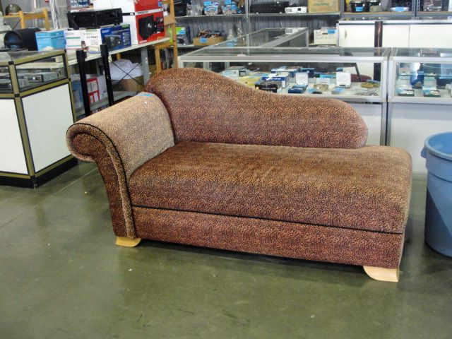 Upholstered cheeta patterned chaise lounge