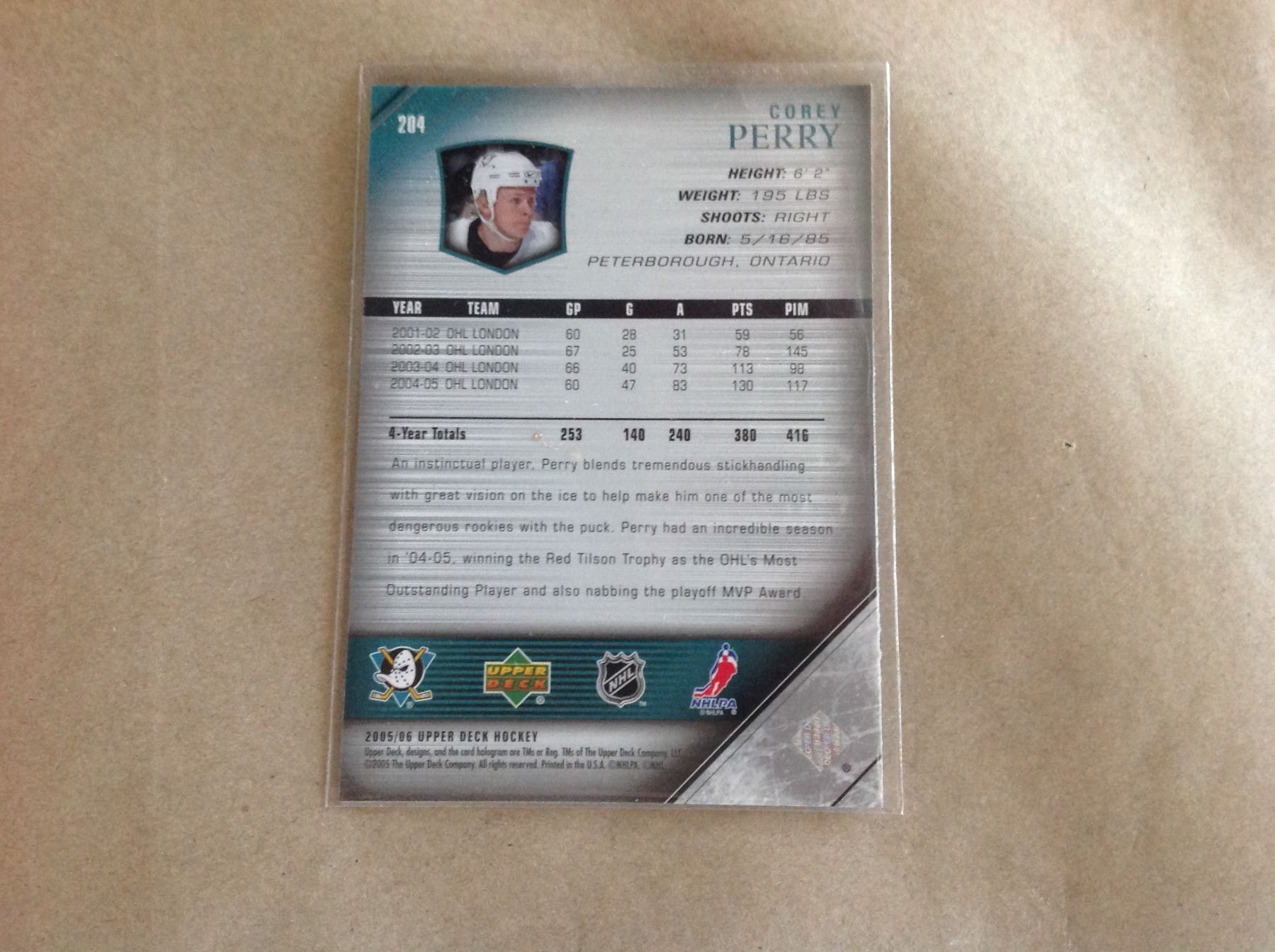 2005/06 Mighty Ducks Rookie Right Wing Corey Perry Hockey Card