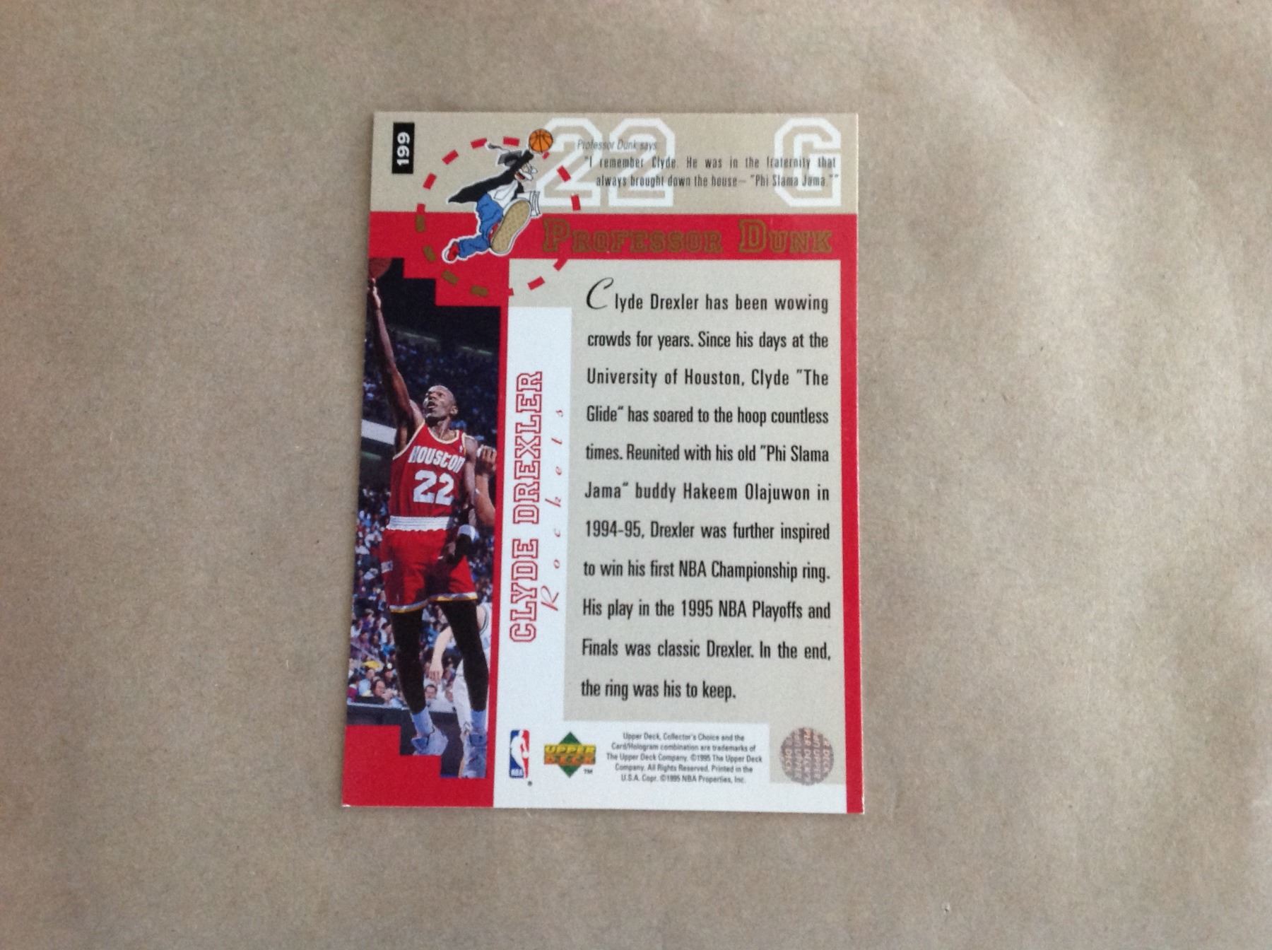 1995 Professor Dunk Houston Rocket's Basketball Card - Clyde Drexler