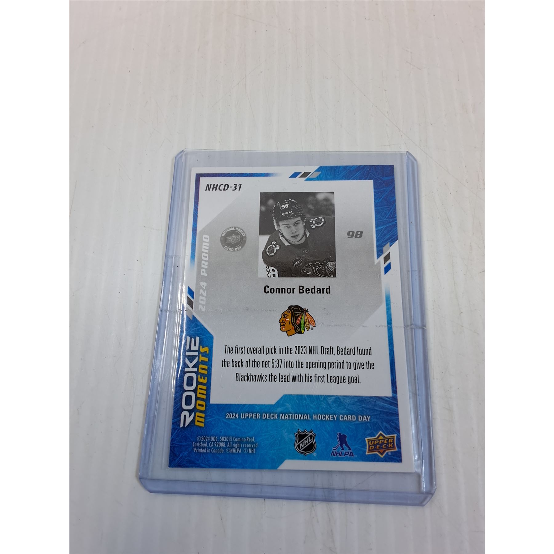Upper Deck National Hockey Day Connor Bedard Rookie Trading Card - 2024 - CANNOT GUARANTEE AUTHENTIC