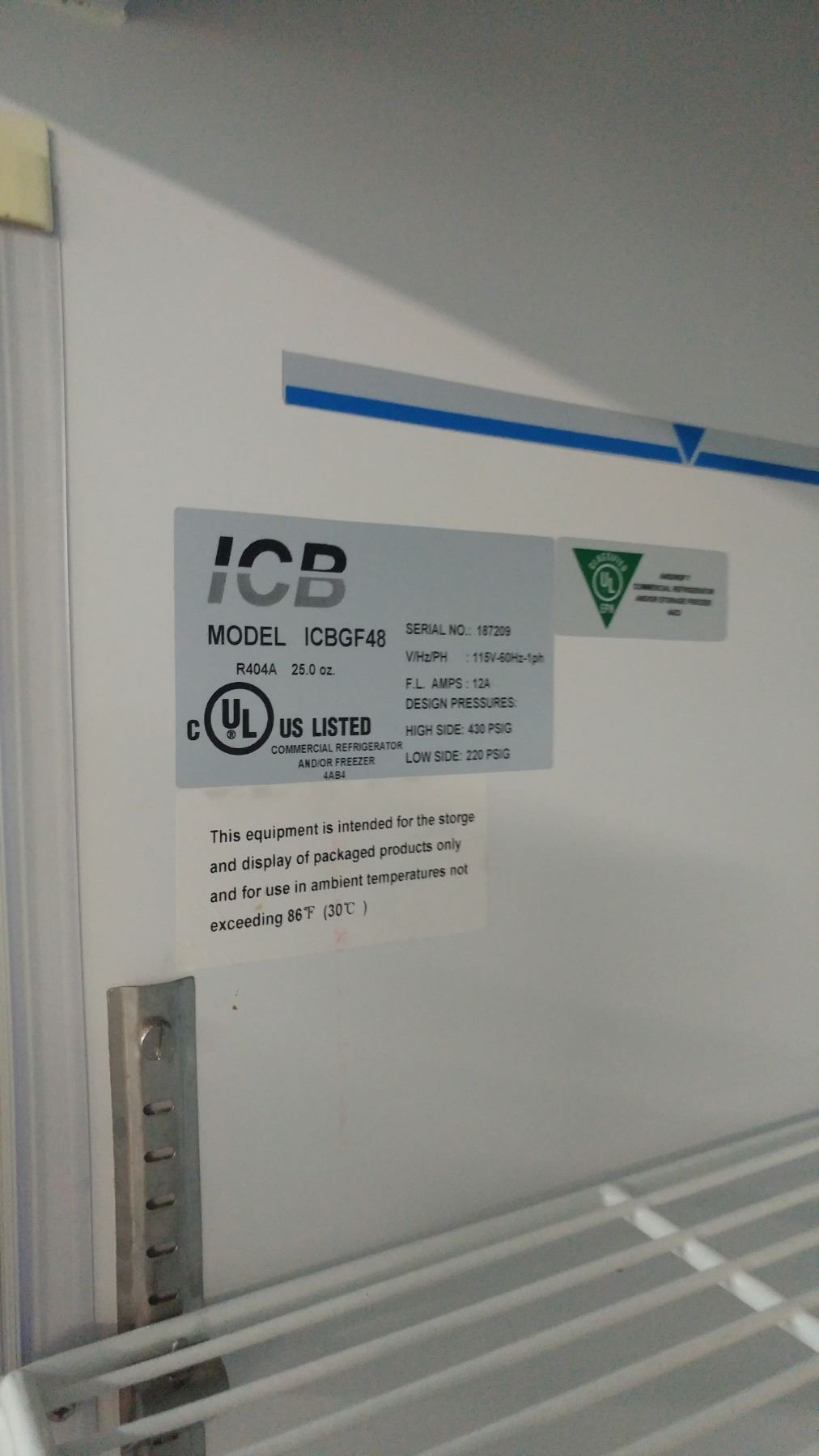 Upright display cooler 54"W x 80"H x 32"D (cools, but needs work)