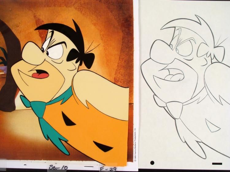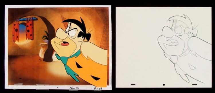This is totally unacceptable!!! The cel comes with a matching drawing overlay. * * Original Production Art Cel, Drawing, and Reproduction Background Original "rough" animation drawing, with notations in black. Fred has been outlined in black and non-photo blue. * Overall Size of the Cel: 10 1/2" x 12 1/2" Overall Size of Reproduction Background: 11" x 13 1/4" * Excellent condition This is an original hand-painted cel set-up used in the production of an episode of "The Flintstones." Each one-of-a-kind set-up represents a slight change in position of the characters. When individually photographed and projected in rapid succession, the images appear to move. * To create production cels, the original animator's drawing is transferred onto an acetate cel (by hand-inking and/or photo copying). The cel is then hand-painted on the reverse side. The background accompanying this set-up is a reproduction background. * * The cel, drawing, and background are ready to be matted and framed. The animator's notations are shown at the bottom of the cel and drawing. *