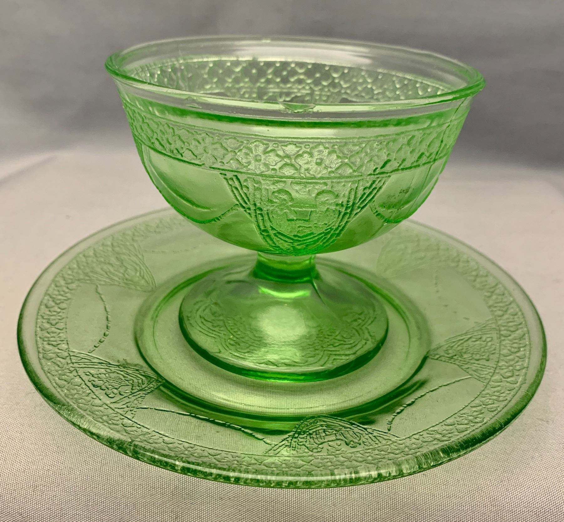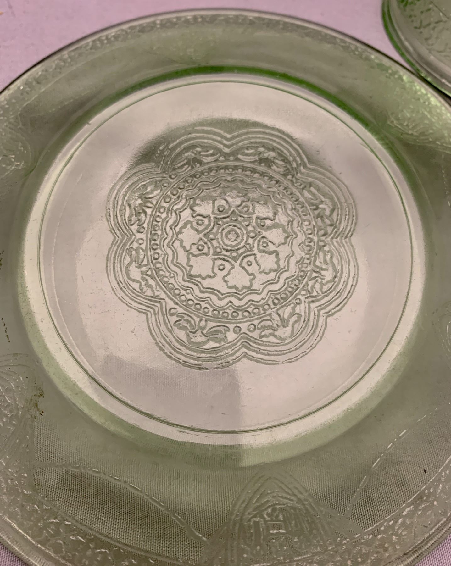 Uranium/Depression Glass - Chipped, Circa 1930s Rare Pattern "Georgian Lovebirds"