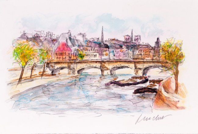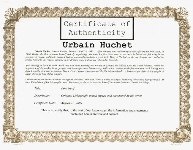 Urbain Huchet "Pont Neuf" Original Lithograph. Size: 17.5" x 12". Pencil signed and Numbered by the artist. Comes with COA and unframed W45