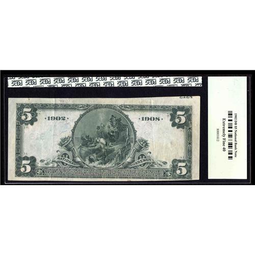 <B>Urbana, OH</B></I> - $5 1902 Date Back Fr. 590 <B>The Champaign NB </B></I> Ch. # (M)916<BR>The census from here now stands at 28 large examples, hardly indicative of significant scarcity. It should be noted, however, that a scant three are of the $5 Date Back variety, making this nice <B>PCGS Extremely Fine 40</B></I> note more of a prize than it might seem at first. Ohio specialists will be particularly interested and may push this specialty item beyond the upper range of our estimate.