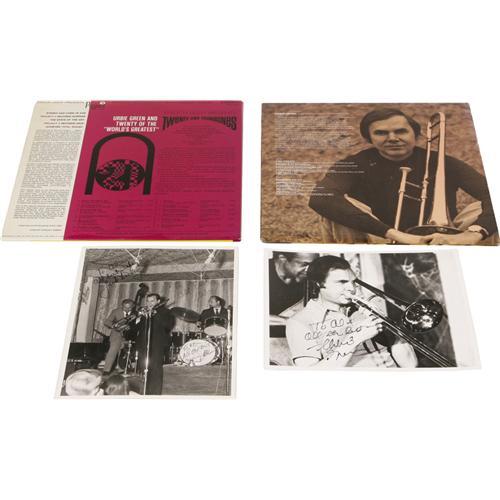 <B>Urbie Green Signed Record and Photo Group.</B></I> Trombonist par excellence, Urbie Green, is spotlighted in this lot. The group includes: "Urbie Green and Twenty-One Trombones" (Project3 PR50145D) with its cover signed by Urbie Green (and a signed photo of Green, Elmer "Mousey" Alexander, and Jack Lesberg); "and "Urbie Green - Bein' Green" (Project3 PR5066 QD) with its cover signed by Green (and a photo signed by Green). <I>From the Al White Jazz autograph archive.</B></I><BR><BR><b>Shipping:</b> Recordings (<a target="_blank" href="http://www.heritageauctions.com/common/shipping.php">view shipping information</a>)