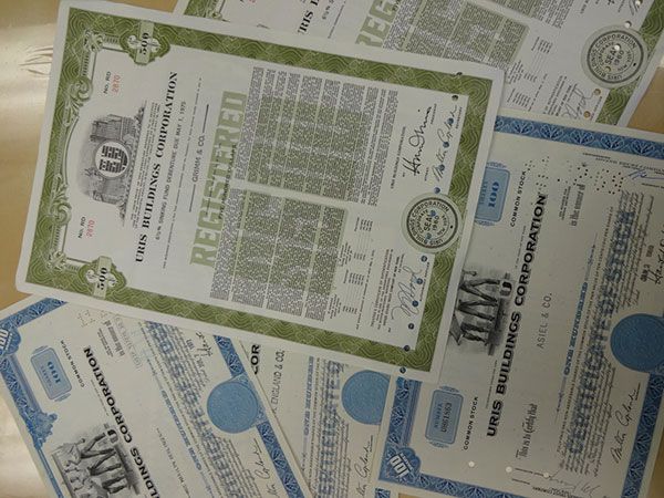 New York. 1960's-1970's. Issued Bond and Stock. Pin-punch cancelled. VF condition, ABNC & SBNC.