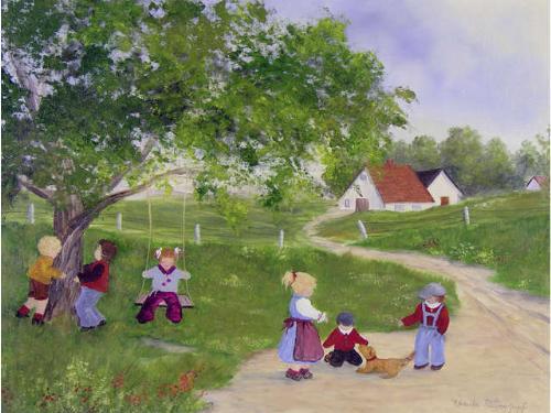 [Canadian/German 20th century] PLAYMATES Acrylic on board 18 x 24 ins. -Signed & titled