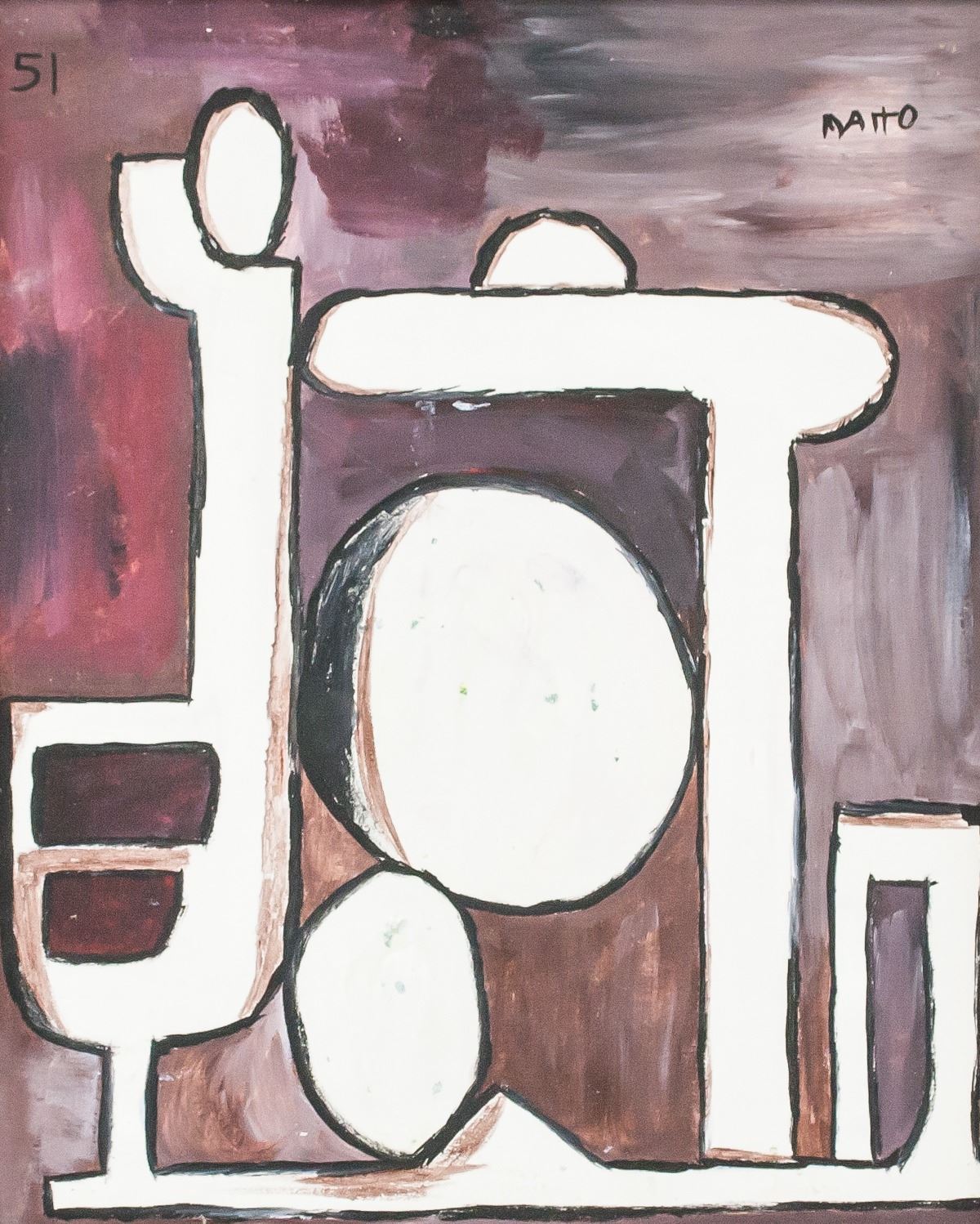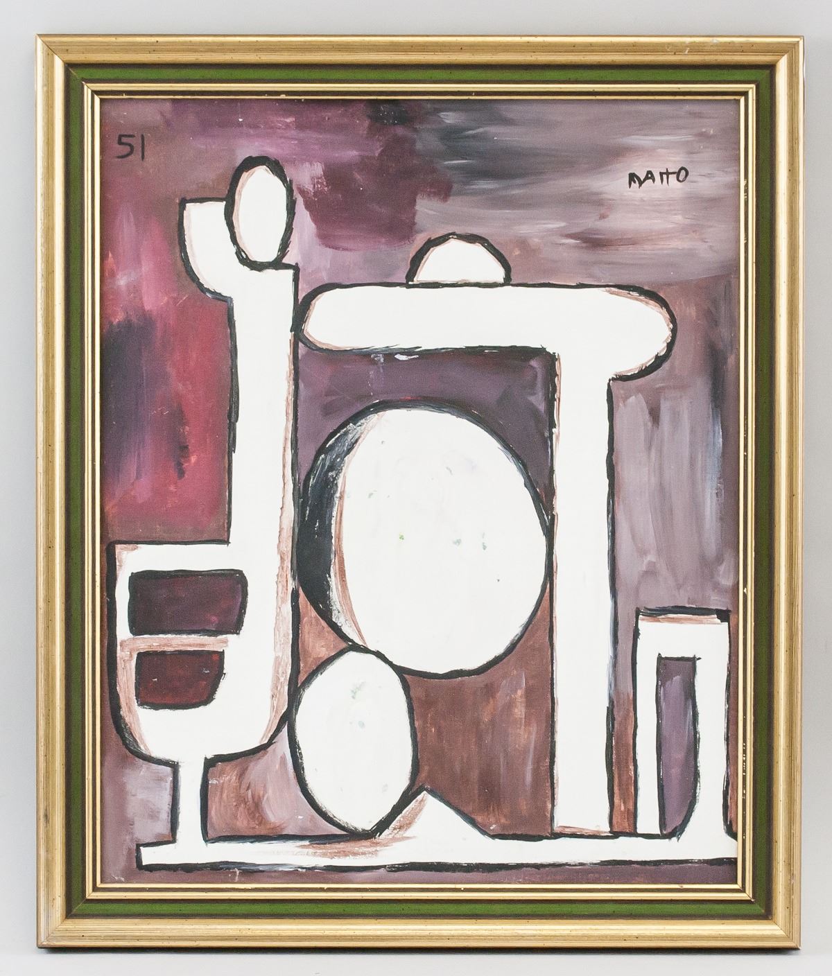 Oil on canvas, framed. Featuring a surrealist composition. Signed Matto on the upper right corner. Inscribed 51 on the upper left corner. 45 x 36 cm (17.75 x 14 inches. Framed size: 52 x 43 cm (20.5 x 17 inches). Provenance: This lot carries limited provenance from a Southern Ontario estate
