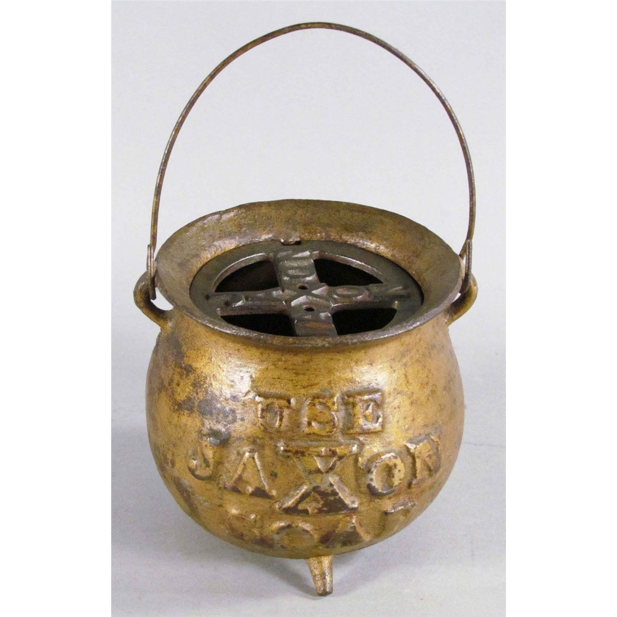Use Jaxon Soap Cast Iron String Holder. Most of original paint still intact otherwise excellent condition. 4 1/2 inch diameter X 4 3/4 inches tall w/o bale. Start Price $50