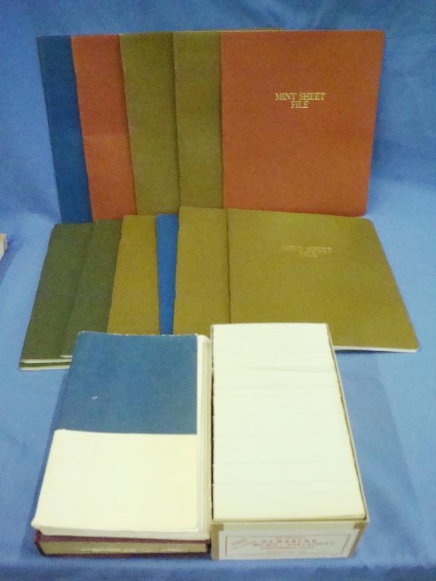 (11)Unused , like new, Mint Sheet files. A nearly full box of 4-1/2 glassines and a couple of other items. Est.$50-75