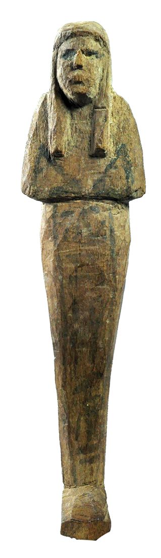 Ushabti. Imperio Nuevo (alrededor de 1550-1070 a.C.). Madera con policromía. Dimensiones 20,0 por 5,0 cm.