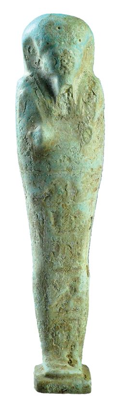 Ushabti para Satamon. Baja época (alrededor del 664-323 a.C.). Fayenza. Altura 10,2 cm. Procedente de una antigua colección Inglesa.