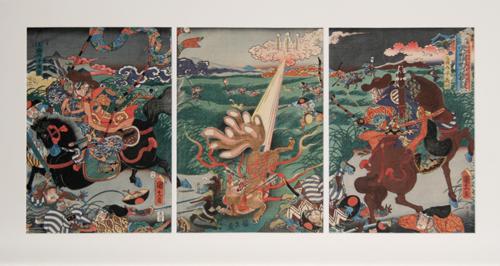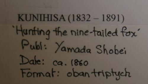 Utagawa Kunihisa, Hunting the Nine-Tailed Fox, Woodblock Triptych