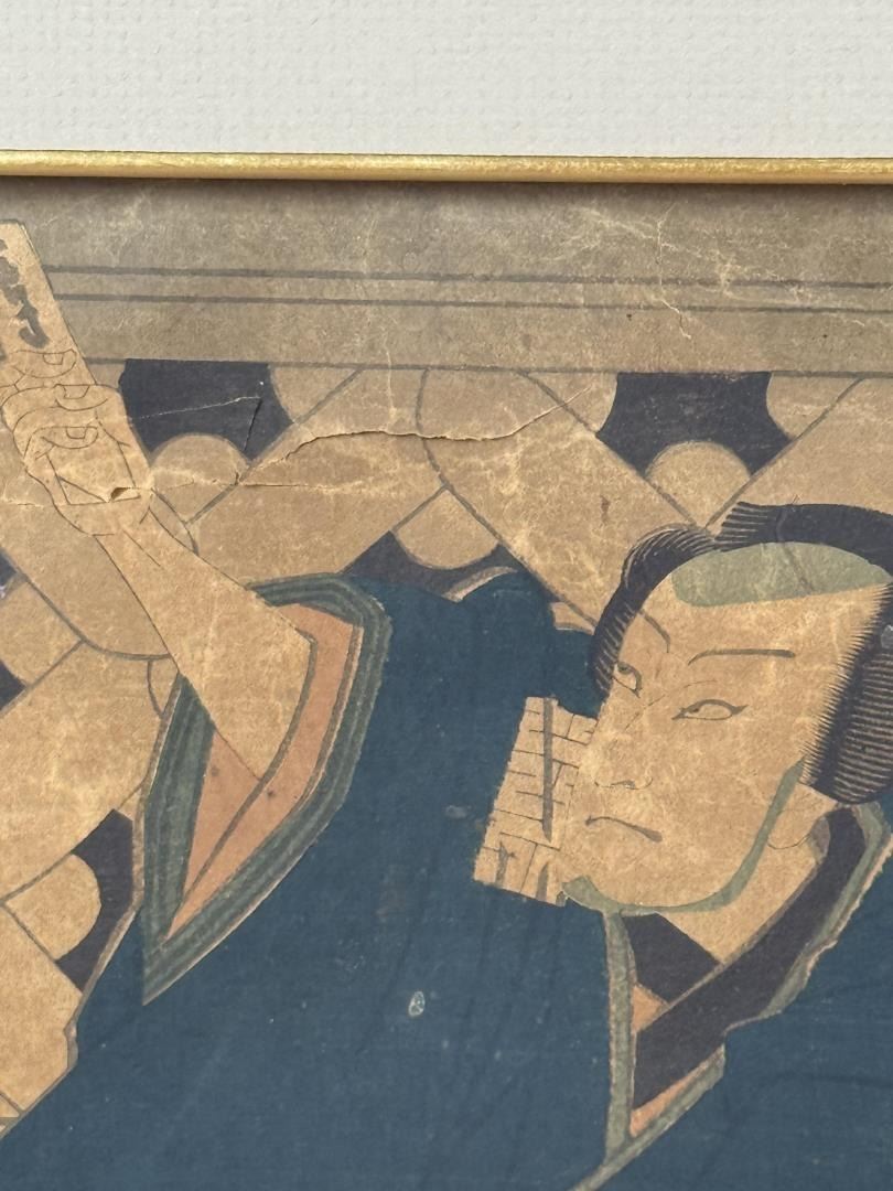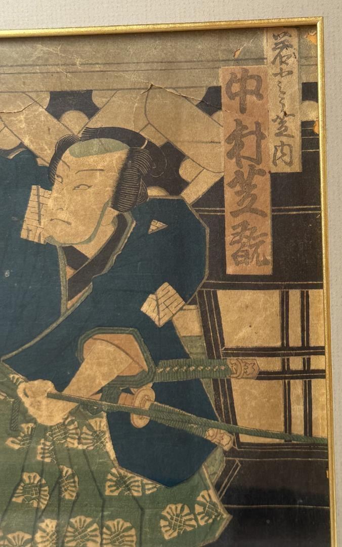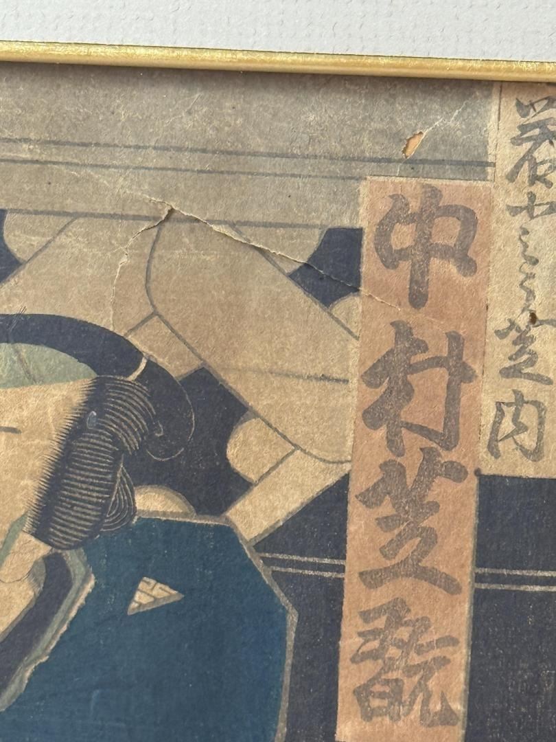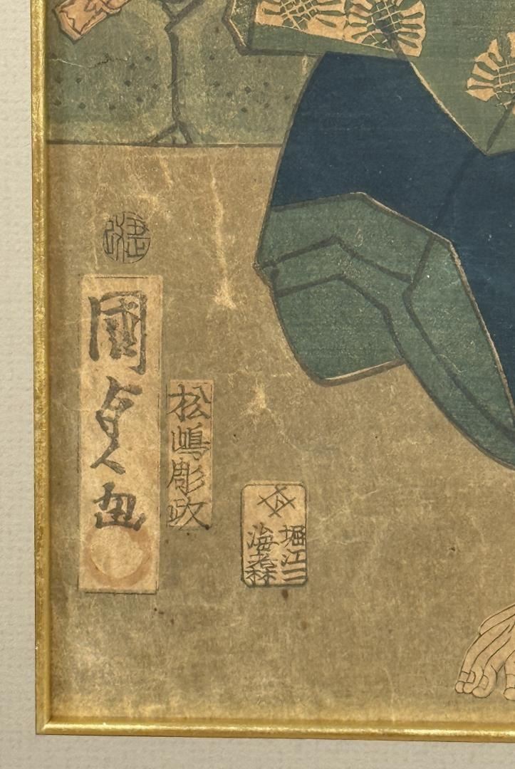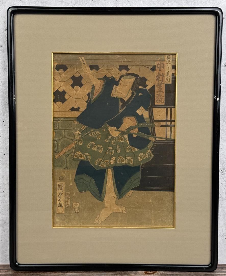 Nice pre-1842 antique print. Portrays Kabuki actor Nakamura Shikan II. Carved by Horimasa of Matsushima and published by Horiye Toyoharu. Print measures 9" by 13" and entire piece is 16" by 20" framed.