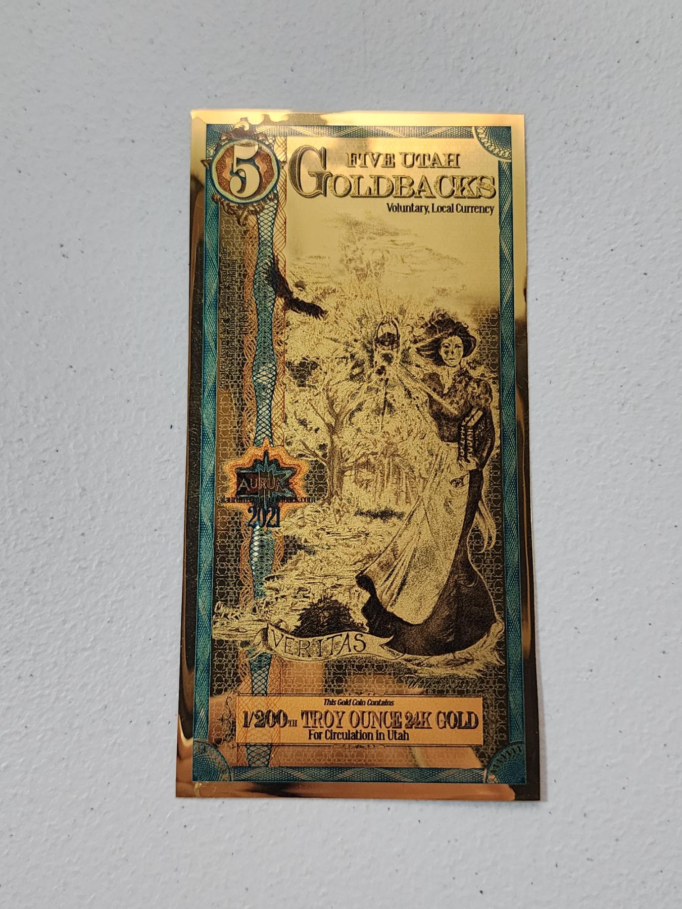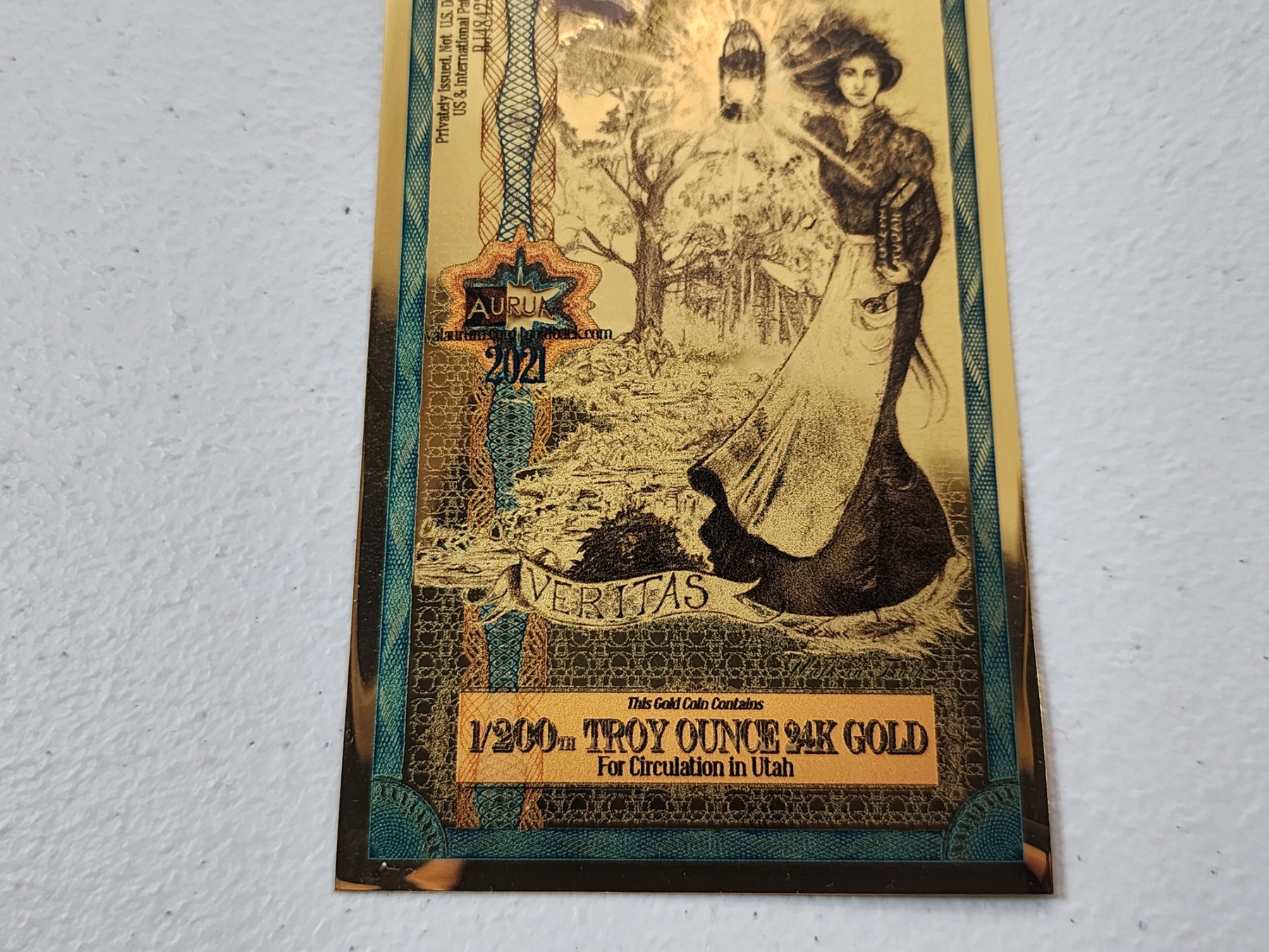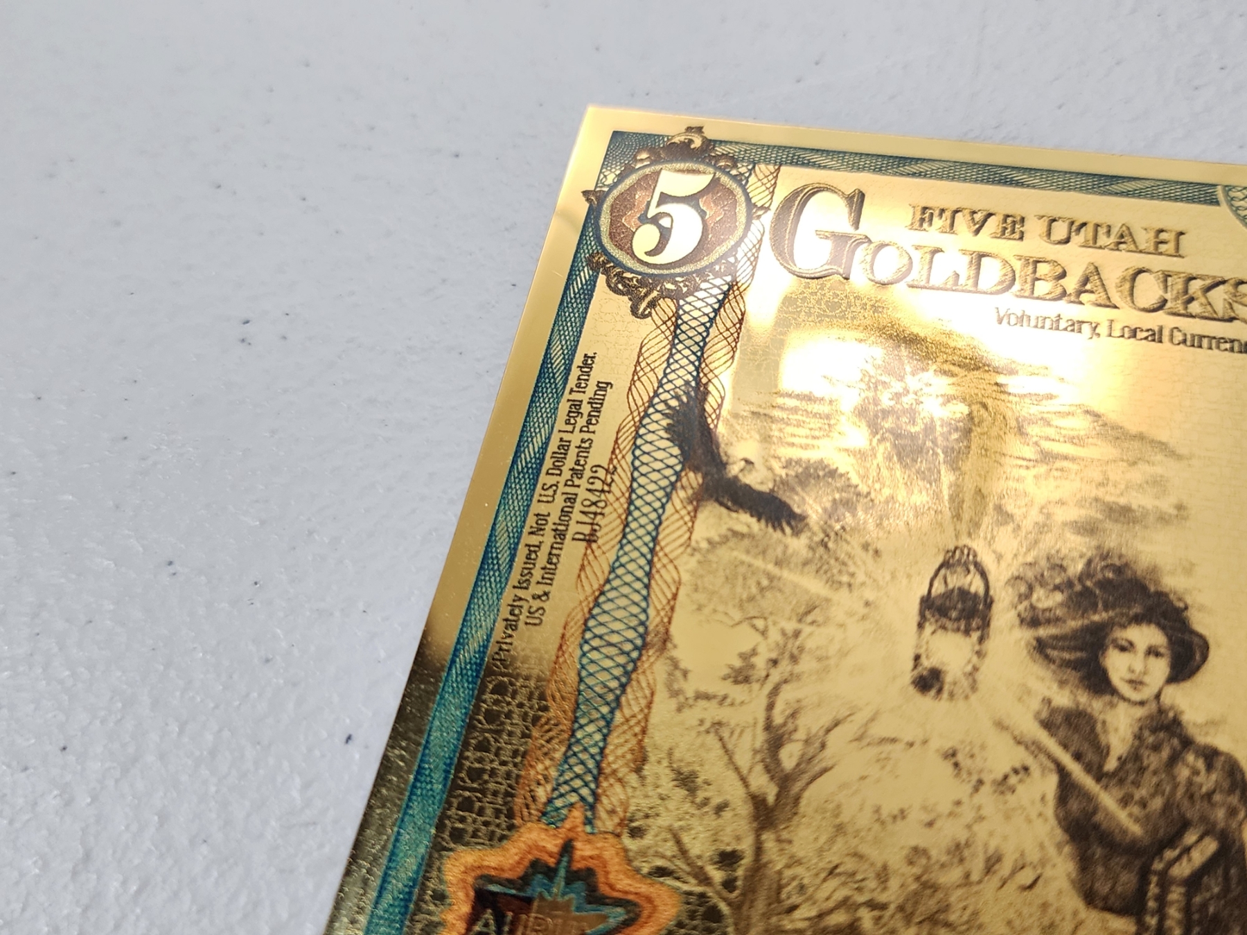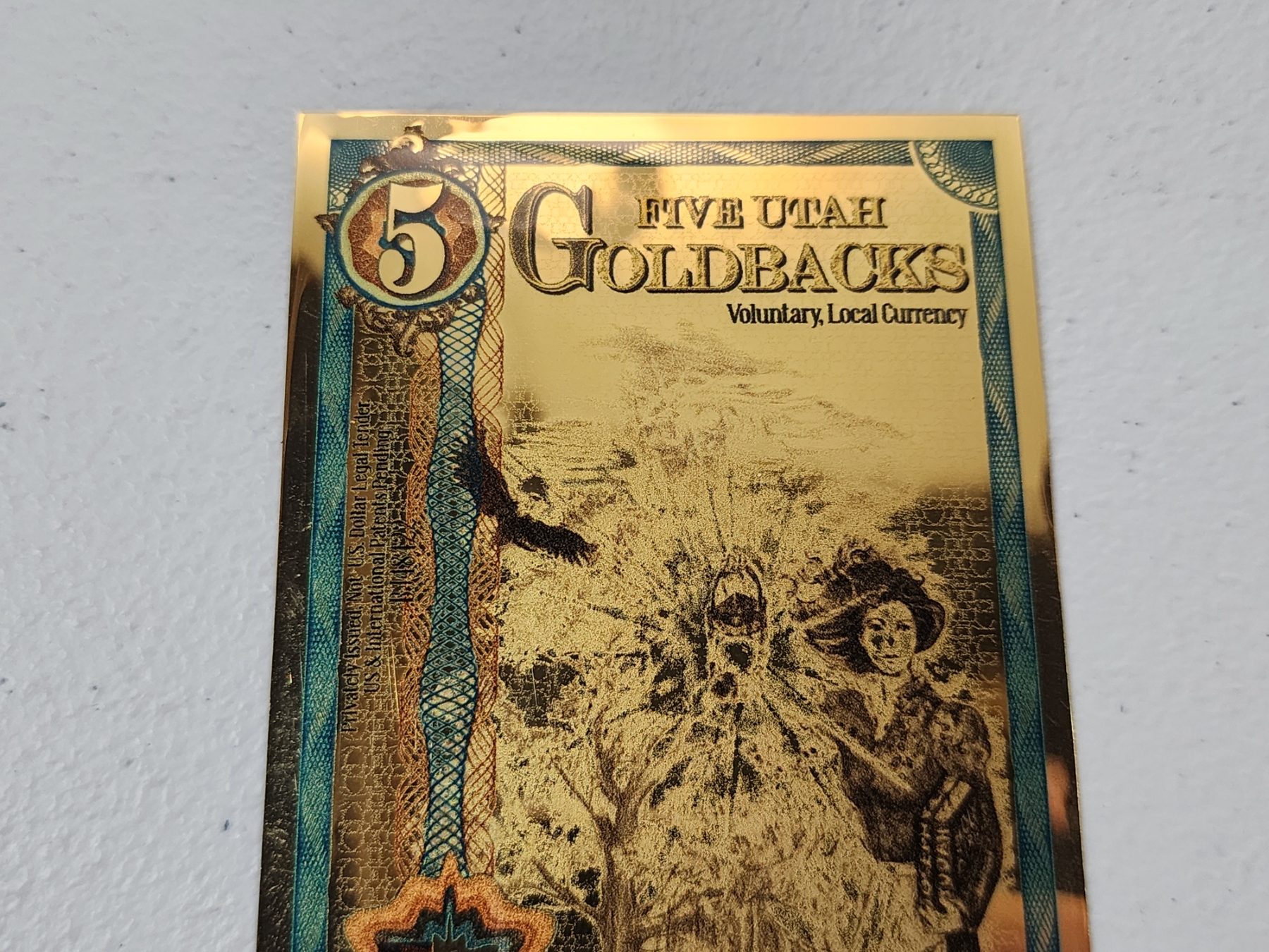 Utah 5 Goldbacks Note - 1/200th Troy Ounce 24K Gold
