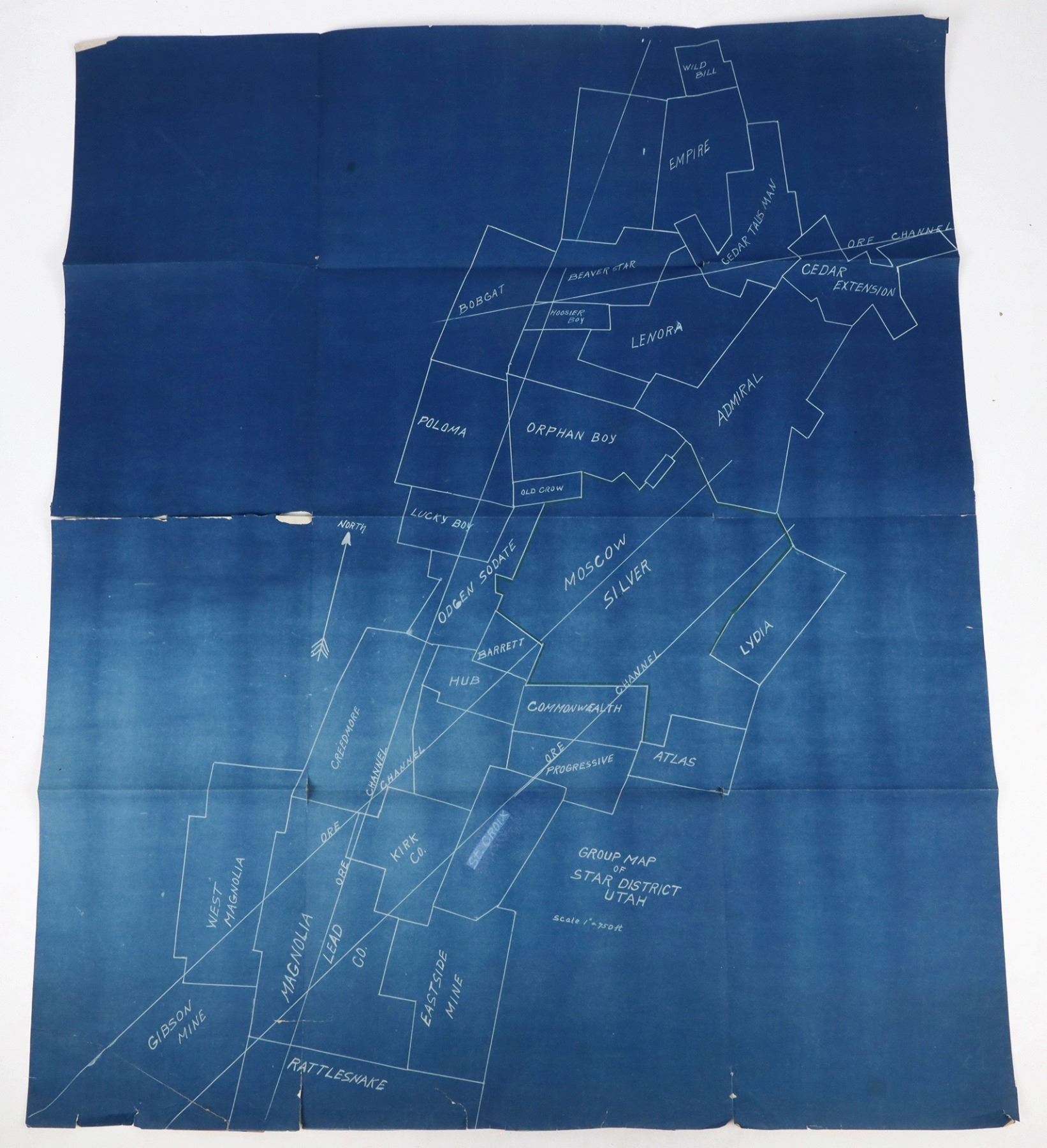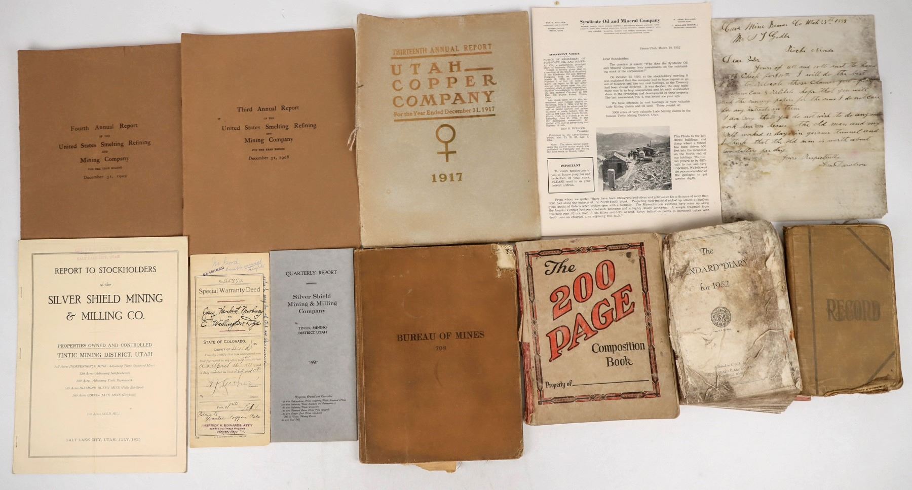 Utah Mine Records includes large map of the Moscow Mine, 1908-09 Annual Reports for US Smelting Refining and Mining Co., 1970 Annual Report for Utah Copper Company, Annual Report for Silver Shield Mining Co., 1888 Letter, Cave Mine, Syndicate Oil Assessment Notice, Crescent Placer Mining Company report.