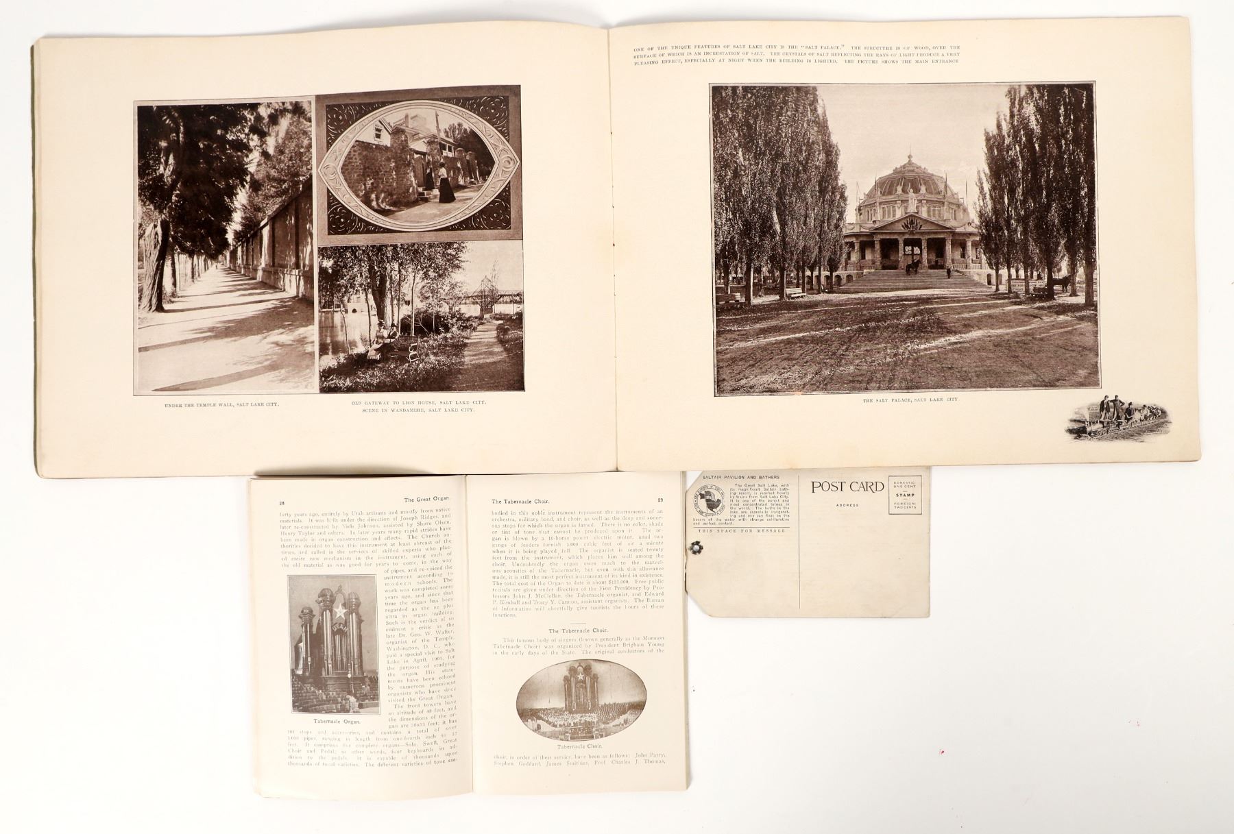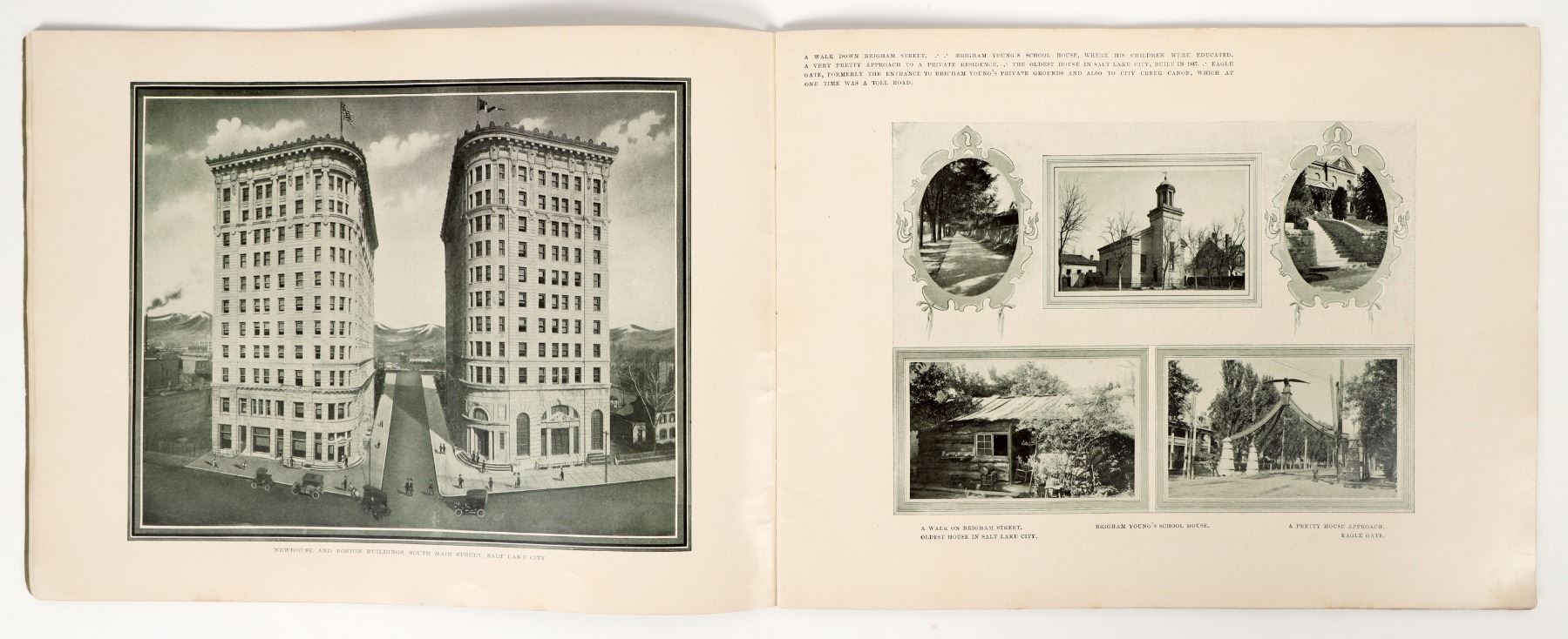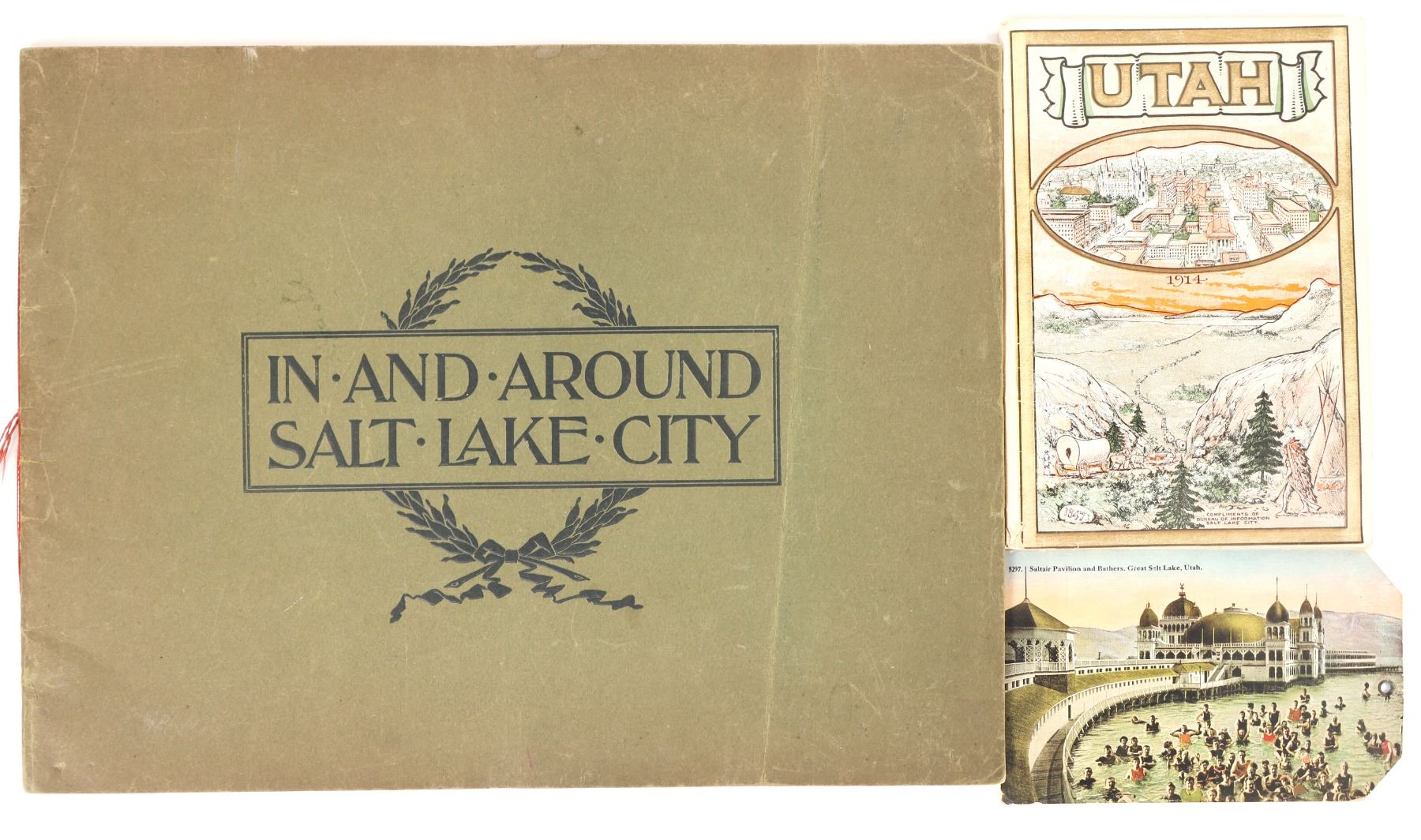 Salt Lake City & Greater Utah picture books showing beautiful scenic locations and important buildings. Covers and spines are intact. Green cover book's pages feel glossy and sturdy, excellent condition with minor toning of the covers. About 100+ pages of content overall. Small book measures 5x7", large book measures 13x10".