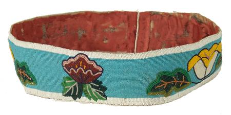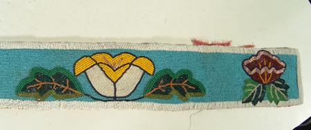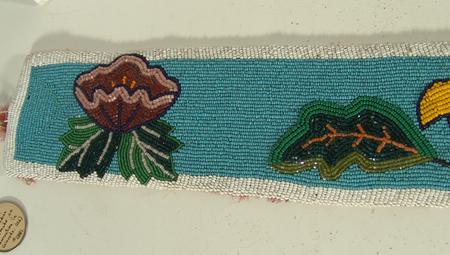 Beautiful fully beaded ladies' belt with traditional floral beaded design - ex. Birdie Brown collection. Condition: very good, back fabric worn away. 39-1/2" x 3-1/2"