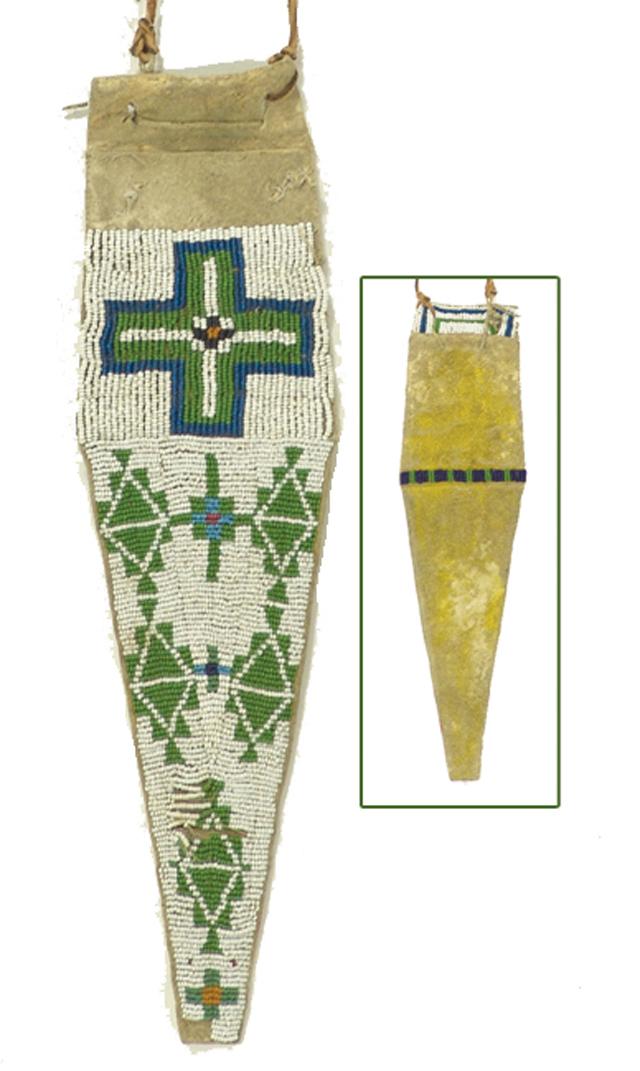 Early 1900s, Beautiful fully beaded flap bag with long tail and crosses in the design. 12" x 3-1/2"