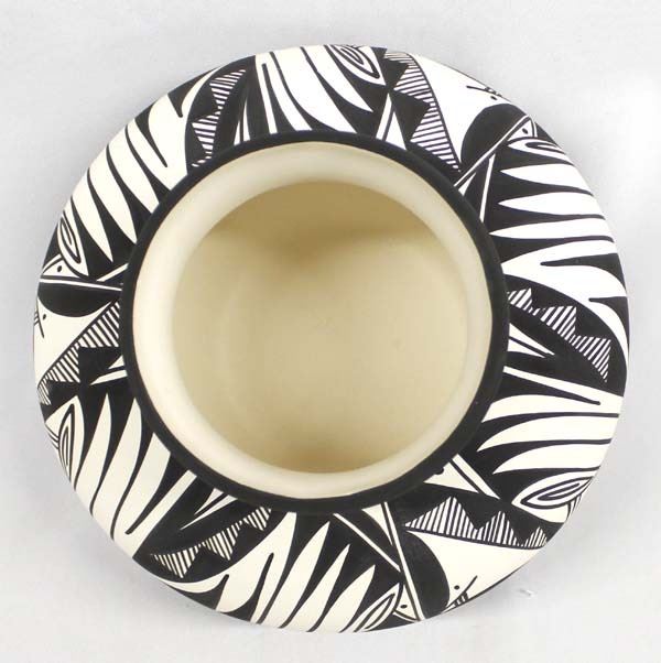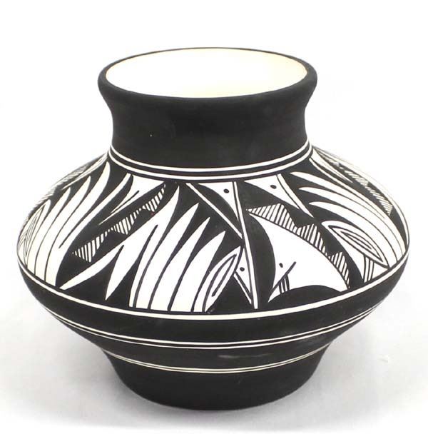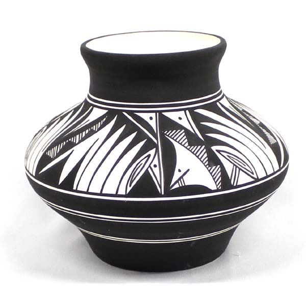 Native American Ute Mountain Hand Painted Black on White Ceramic Pottery Vase by Beverly House-Padilla, beautifully painted, crisp lines and designs, measures 7.5'' x 9.5'' and is signed on the bottom
