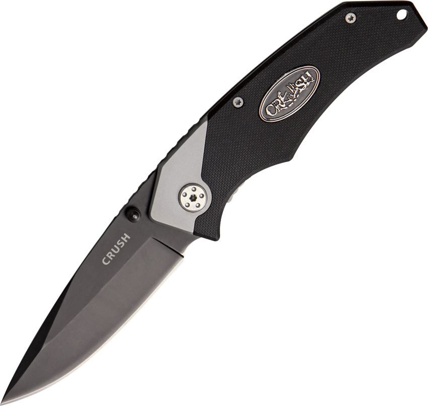 Crush EDC Folding Body Lock - 4 1/2" closed framelock. 3 1/4" 420 stainless drop point blade with dual thumb studs and black anodized finish. Black G-10 front handle with matte finish stainless trim. Matte finish stainless back handle. Stainless pocket clip.