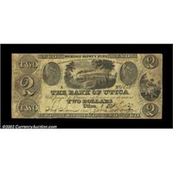 Utica, MI- The Bank of Utica $2 Oct. 6, 1837 G4 Bowen 3A very rare note. Fine, with a few pinholes a