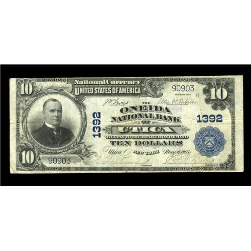 <B>Utica, NY</B></I> - $10 1902 Plain Back Fr. 624 <B>The Oneida NB</B></I> Ch. # 1392<BR>A decent problem free circulated example.