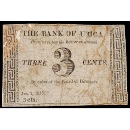 Utica, NY, The Bank of Utica, 3¢, Very Good with Backing.