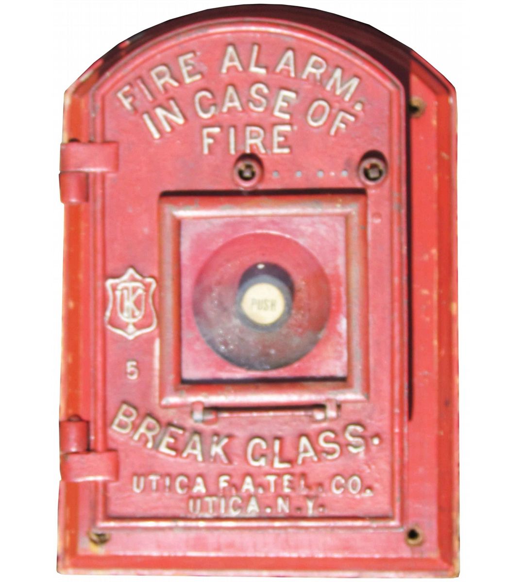 Utica Small Fire Box. F.A. Tel. Co. Utica, NY. Metal case with contents. 10 inches tall overall.