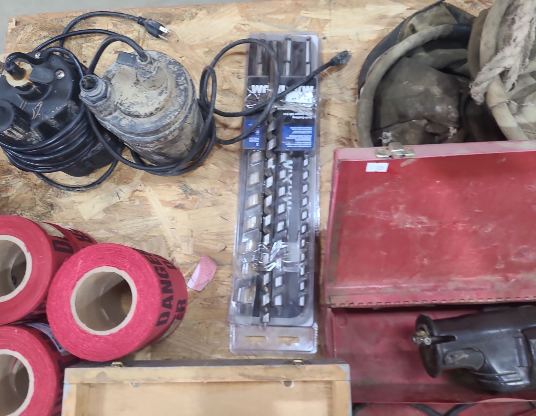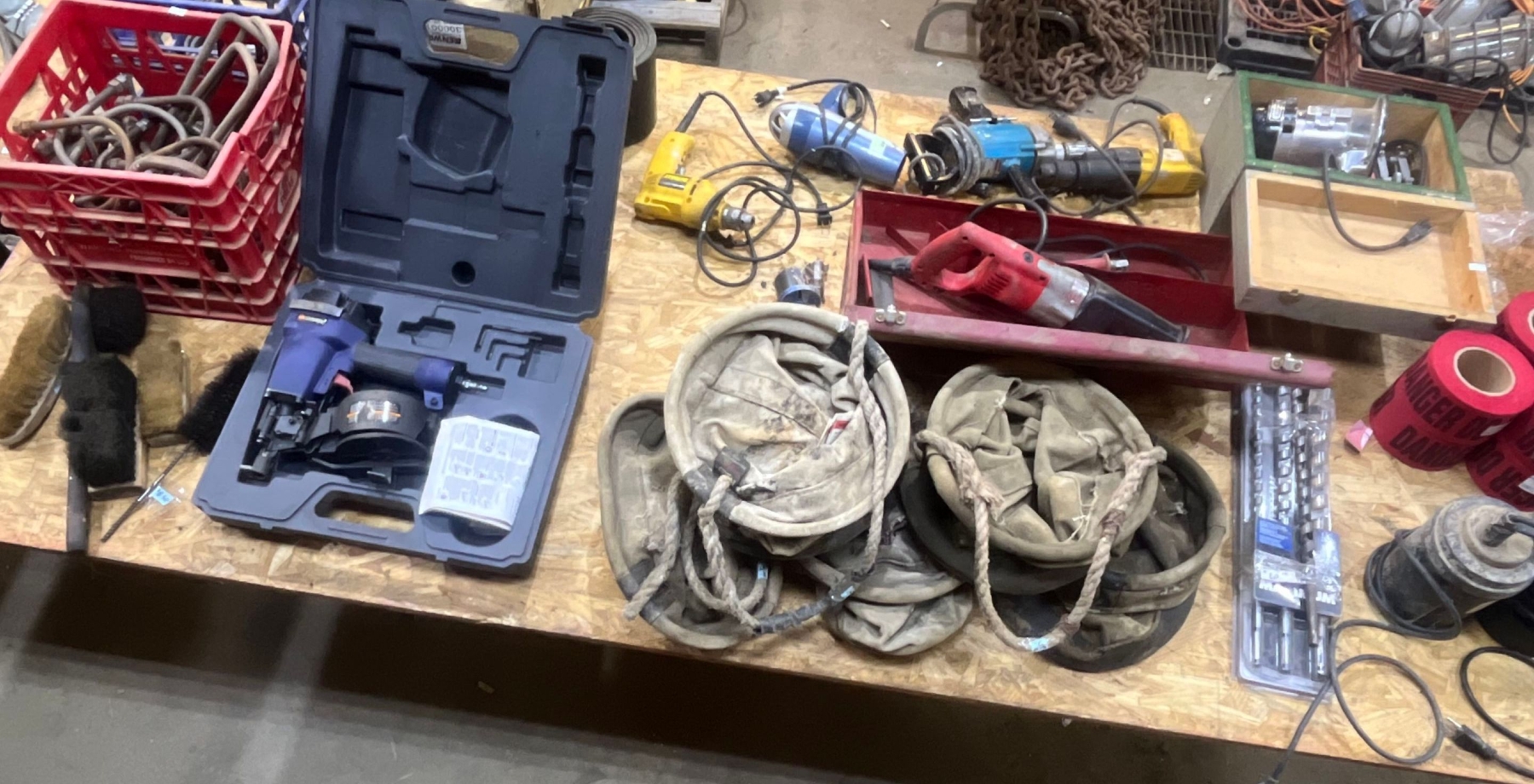 Utility Table w/ Craftsman Router, Milwaukee Sawzall, Drills, Pump, Roofing Nailer and More! (3)