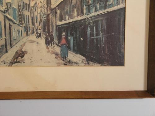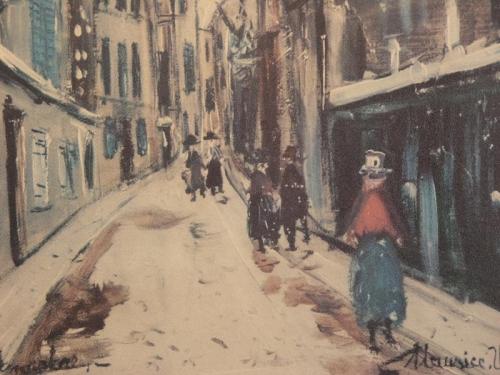 Utrillo, Maurice (France 1883-1955). Montmartre, reproduction print of Parisian city street, very good condition, 28" by 31"