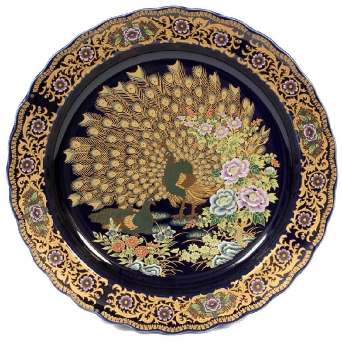 Utsuwa-no-yakata Japanese Porcelain Charger Peacock Design, Dia 14":royal Blue Floral - 9215-021718-LA-21323