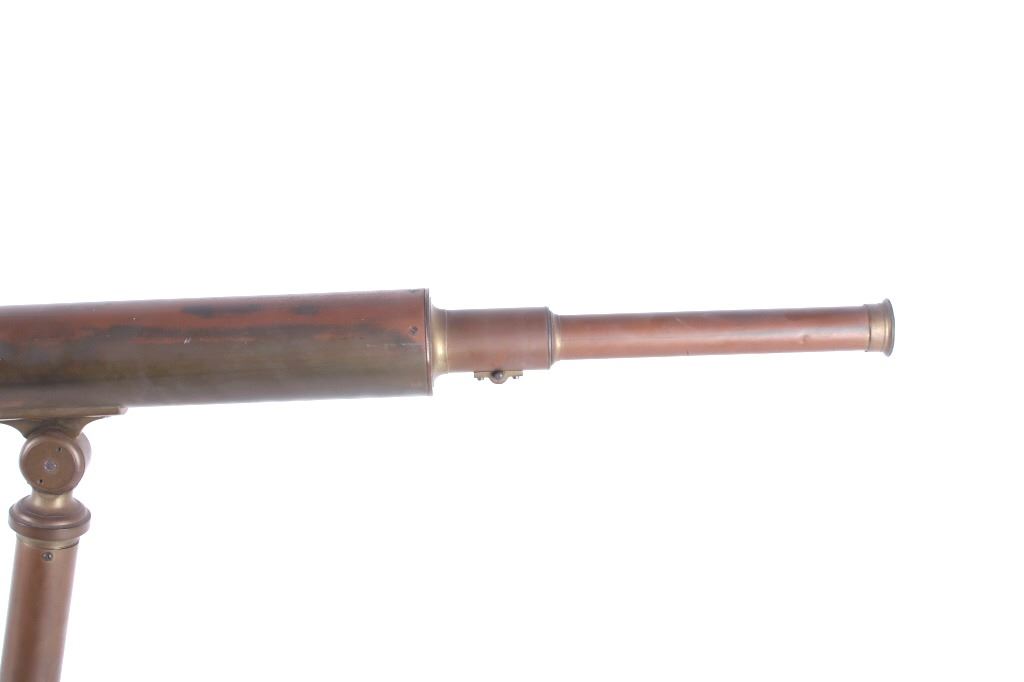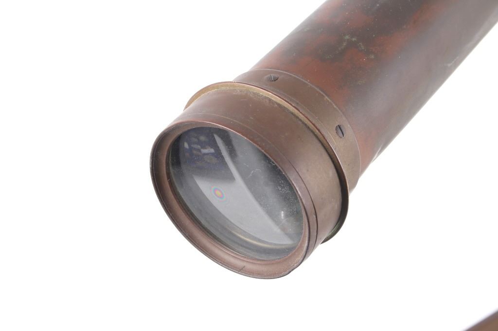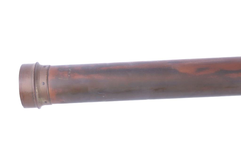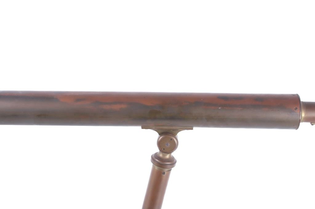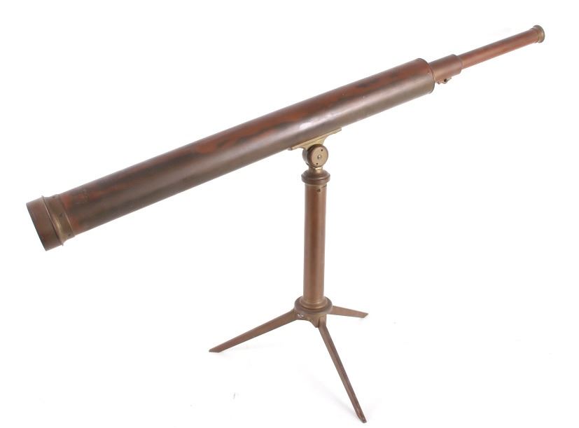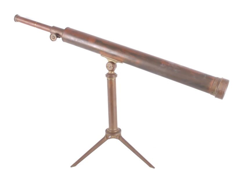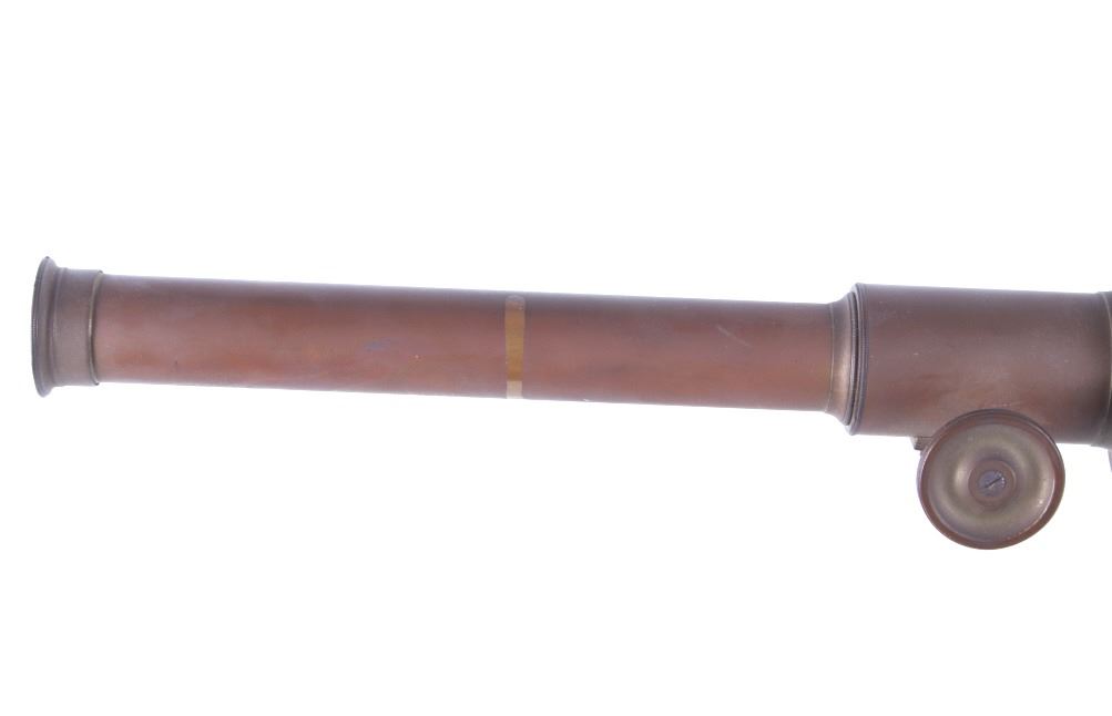 Featured in this lot is this Utzshneider u Fraunfofer brass telescopic sight circa 1840's. The telescope features a wonderfully and professionally crafted brass construction that features a tube sight rail with a adjustable telescopic sight system and is propped up on a tripod system. The tube is marked 'Utzschneider u. Fraunhofer in Munchen' close to the sight system. The condition of this telescopic sight is good with some fading to the sheen of the lacquered brass but otherwise it shows good overall condition. The measurements of this telescopic sight is 21 1/4" x 39" x 14".
