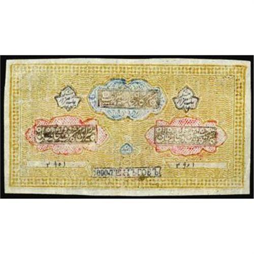 <style type="text/css"> body, td, th { font-family: Arial, Helvetica, sans-serif; font-size: 12px; color: #482424; margin: 0px; padding: 0px; } #header { background-image: url(http://www.bowersandmerena.com/ebay/images/template_v3_01.gif); clear: both; background-color: #590303; border-top-width: 2px; border-top-style: solid; border-top-color: #B38C4F; } #header #header_wrapper { height: 75px; clear: both; width: 800px; margin-right: auto; margin-left: auto; background-image: url(http://www.bowersandmerena.com/ebay/images/template_v3_03.gif); background-repeat: no-repeat; background-position: right; color: #F3EDCC; } #header #header_wrapper #header_logo { float: left; height: 75px; width: 444px; background-image: url(http://www.bowersandmerena.com/ebay/images/template_v3_02.gif); background-repeat: no-repeat; font-size: 10px; text-transform: capitalize; color: #B38C4F; } #header #header_wrapper #header_right { float: left; height: 75px; width: 356px; text-align: right; } #header #header_wrapper #header_right #headerLoginBtn { margin-bottom: 30px; } #header #header_wrapper #header_right input#txtSearch { color: #B49056; border: 1px solid #B49056; width: 175px; padding-top: 3px; padding-right: 3px; padding-bottom: 4px; padding-left: 3px; } #nav { height: 37px; background-image: url(http://www.bowersandmerena.com/ebay/images/template_v3_05.gif); clear: both; } #nav #nav_wrapper { height: 35px; width: 800px; margin-right: auto; margin-left: auto; border-left-width: 1px; border-left-style: solid; border-left-color: #B38C4F; } #nav #nav_wrapper a { padding-right: 15px; padding-left: 15px; border-right-width: 1px; border-right-style: solid; border-right-color: #B38C4F; height: 25px; padding-top: 10px; display: block; float: left; text-decoration: none; font-weight: bold; color: #5D0303; } #nav #nav_wrapper a:hover { color: #B38C4F; } #nav #nav_wrapper #search { float: right; padding-top: 7px; } #nav #nav_wrapper #search #txtSearch { font-family: Arial, Helvetica, sans-serif; font-size: 10px; text-transform: uppercase; color: #D2AE75; border: 1px solid #B38C4F; padding: 3px; } #content_bgd { background-image: url(http://www.bowersandmerena.com/ebay/images/template_v3_09.gif); background-repeat: repeat-y; background-position: center; padding-top: 15px; padding-bottom: 15px; background-color: #FBFBDB; } #content_wrapper { clear: both; height: auto; width: 800px; margin-right: auto; margin-left: auto; } .LotDetailWhite { line-height:normal; font-size:13px; font-family: arial,helvetica,sans-serif; color: White; font-weight: bold; } .LotDetailInformation { line-height:normal; font-size: 13px; font-family: arial,helvetica,sans-serif; } .LotDetailMessage { line-height:normal; font-size: 13px; font-family: arial,helvetica,sans-serif; color: red; } } tr.HeaderAuctionTitle td { color: #000000; font-weight: bold; padding: 2px; background-image: url(http://www.bowersandmerena.com/ebay/images/template_v3_05.gif); background-repeat: repeat-x; border-bottom-width: 1px; border-bottom-style: solid; border-bottom-color: #B38C4F; } table.AuctionSummary a, table.AuctionSummary a:link, table.AuctionSummary a:visited { color: #0000FF; text-decoration: none; } } td.tableHeaderLeft { border-left-width: 1px; border-left-style: solid; border-left-color: #B38C4F; } td.tableHeaderRight { border-right-width: 1px; border-right-style: solid; border-right-color: #B38C4F; } td.tableCellMiddle { border-left-width: 1px; border-left-style: solid; border-left-color: #B38C4F; border-right-width: 1px; border-right-style: solid; border-right-color: #B38C4F; padding: 5px; } tr.footer td { border-top-width: 1px; border-top-style: solid; border-top-color: #B38C4F; } </style> </head> <body> <div id="header"> <div id="header_wrapper"> <div id="header_logo"> </div> <div id="header_right"> </div> </div> </div> <div id="nav"> <div id="nav_wrapper"> <a href="http://www.bowersandmerena.com">Our eBayLive Auctions</a> <a href="#PaymentInfo">Payment Information</a> <a href="#ShippingInfo">Shipping Information</a> <a href="#About">About Bowers and Merena</a> </div> </div> <div id="content_bgd"> <div id="content_wrapper"> <table width="100%" border="0" cellpadding="5" cellspacing="0" class="AuctionSummary"> <tbody> <tr class="HeaderAuctionTitle" style="height: 25px;"> <td align="left" class="tableHeaderLeft" > </td> <td align="center" class="tableHeaderRight"> <span style="font-size: large;">Lot #2391. Uzbekistan. Bukhara, Emirate, Treasury, 1919 Issue.</span> </td> </tr> <tr> <td colspan="3" class="tableCellMiddle"> AH1338 (1919), 1000 Tengas, P-23 Issued note, XF+ to AU condition. Another scarce note in high grade.