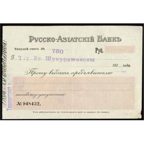 <style type="text/css"> body, td, th { font-family: Arial, Helvetica, sans-serif; font-size: 12px; color: #482424; margin: 0px; padding: 0px; } #header { background-image: url(http://www.bowersandmerena.com/ebay/images/template_v3_01.gif); clear: both; background-color: #590303; border-top-width: 2px; border-top-style: solid; border-top-color: #B38C4F; } #header #header_wrapper { height: 75px; clear: both; width: 800px; margin-right: auto; margin-left: auto; background-image: url(http://www.bowersandmerena.com/ebay/images/template_v3_03.gif); background-repeat: no-repeat; background-position: right; color: #F3EDCC; } #header #header_wrapper #header_logo { float: left; height: 75px; width: 444px; background-image: url(http://www.bowersandmerena.com/ebay/images/template_v3_02.gif); background-repeat: no-repeat; font-size: 10px; text-transform: capitalize; color: #B38C4F; } #header #header_wrapper #header_right { float: left; height: 75px; width: 356px; text-align: right; } #header #header_wrapper #header_right #headerLoginBtn { margin-bottom: 30px; } #header #header_wrapper #header_right input#txtSearch { color: #B49056; border: 1px solid #B49056; width: 175px; padding-top: 3px; padding-right: 3px; padding-bottom: 4px; padding-left: 3px; } #nav { height: 37px; background-image: url(http://www.bowersandmerena.com/ebay/images/template_v3_05.gif); clear: both; } #nav #nav_wrapper { height: 35px; width: 800px; margin-right: auto; margin-left: auto; border-left-width: 1px; border-left-style: solid; border-left-color: #B38C4F; } #nav #nav_wrapper a { padding-right: 15px; padding-left: 15px; border-right-width: 1px; border-right-style: solid; border-right-color: #B38C4F; height: 25px; padding-top: 10px; display: block; float: left; text-decoration: none; font-weight: bold; color: #5D0303; } #nav #nav_wrapper a:hover { color: #B38C4F; } #nav #nav_wrapper #search { float: right; padding-top: 7px; } #nav #nav_wrapper #search #txtSearch { font-family: Arial, Helvetica, sans-serif; font-size: 10px; text-transform: uppercase; color: #D2AE75; border: 1px solid #B38C4F; padding: 3px; } #content_bgd { background-image: url(http://www.bowersandmerena.com/ebay/images/template_v3_09.gif); background-repeat: repeat-y; background-position: center; padding-top: 15px; padding-bottom: 15px; background-color: #FBFBDB; } #content_wrapper { clear: both; height: auto; width: 800px; margin-right: auto; margin-left: auto; } .LotDetailWhite { line-height:normal; font-size:13px; font-family: arial,helvetica,sans-serif; color: White; font-weight: bold; } .LotDetailInformation { line-height:normal; font-size: 13px; font-family: arial,helvetica,sans-serif; } .LotDetailMessage { line-height:normal; font-size: 13px; font-family: arial,helvetica,sans-serif; color: red; } } tr.HeaderAuctionTitle td { color: #000000; font-weight: bold; padding: 2px; background-image: url(http://www.bowersandmerena.com/ebay/images/template_v3_05.gif); background-repeat: repeat-x; border-bottom-width: 1px; border-bottom-style: solid; border-bottom-color: #B38C4F; } table.AuctionSummary a, table.AuctionSummary a:link, table.AuctionSummary a:visited { color: #0000FF; text-decoration: none; } } td.tableHeaderLeft { border-left-width: 1px; border-left-style: solid; border-left-color: #B38C4F; } td.tableHeaderRight { border-right-width: 1px; border-right-style: solid; border-right-color: #B38C4F; } td.tableCellMiddle { border-left-width: 1px; border-left-style: solid; border-left-color: #B38C4F; border-right-width: 1px; border-right-style: solid; border-right-color: #B38C4F; padding: 5px; } tr.footer td { border-top-width: 1px; border-top-style: solid; border-top-color: #B38C4F; } </style> </head> <body> <div id="header"> <div id="header_wrapper"> <div id="header_logo"> </div> <div id="header_right"> </div> </div> </div> <div id="nav"> <div id="nav_wrapper"> <a href="http://www.bowersandmerena.com">Our eBayLive Auctions</a> <a href="#PaymentInfo">Payment Information</a> <a href="#ShippingInfo">Shipping Information</a> <a href="#About">About Bowers and Merena</a> </div> </div> <div id="content_bgd"> <div id="content_wrapper"> <table width="100%" border="0" cellpadding="5" cellspacing="0" class="AuctionSummary"> <tbody> <tr class="HeaderAuctionTitle" style="height: 25px;"> <td align="left" class="tableHeaderLeft" > </td> <td align="center" class="tableHeaderRight"> <span style="font-size: large;">Lot #2398. Uzbekistan. Tashkent Scrip Note Assortment.</span> </td> </tr> <tr> <td colspan="3" class="tableCellMiddle"> Lot of 5 notes from 4 different issuers. Various dates, denominations and companies. Includes 5000 Rubels, P-Unlisted, Denis #1465, AU to CU; Russo-Asiatic Bank Unissued check or draft and other issues. Scarce scrip assortment.